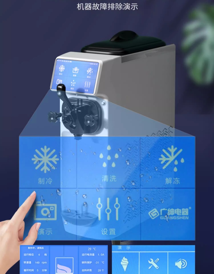 Guangshen 상업용 아이스크림 기계 데스크탑 아이스크림 기계 소형 7 일 무세척 아이스크림 기계 완전 자동 콘 기계