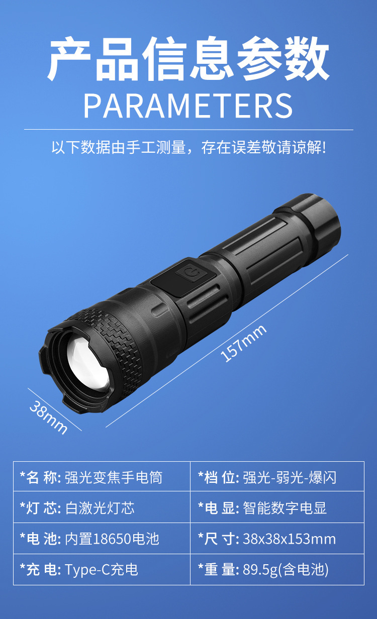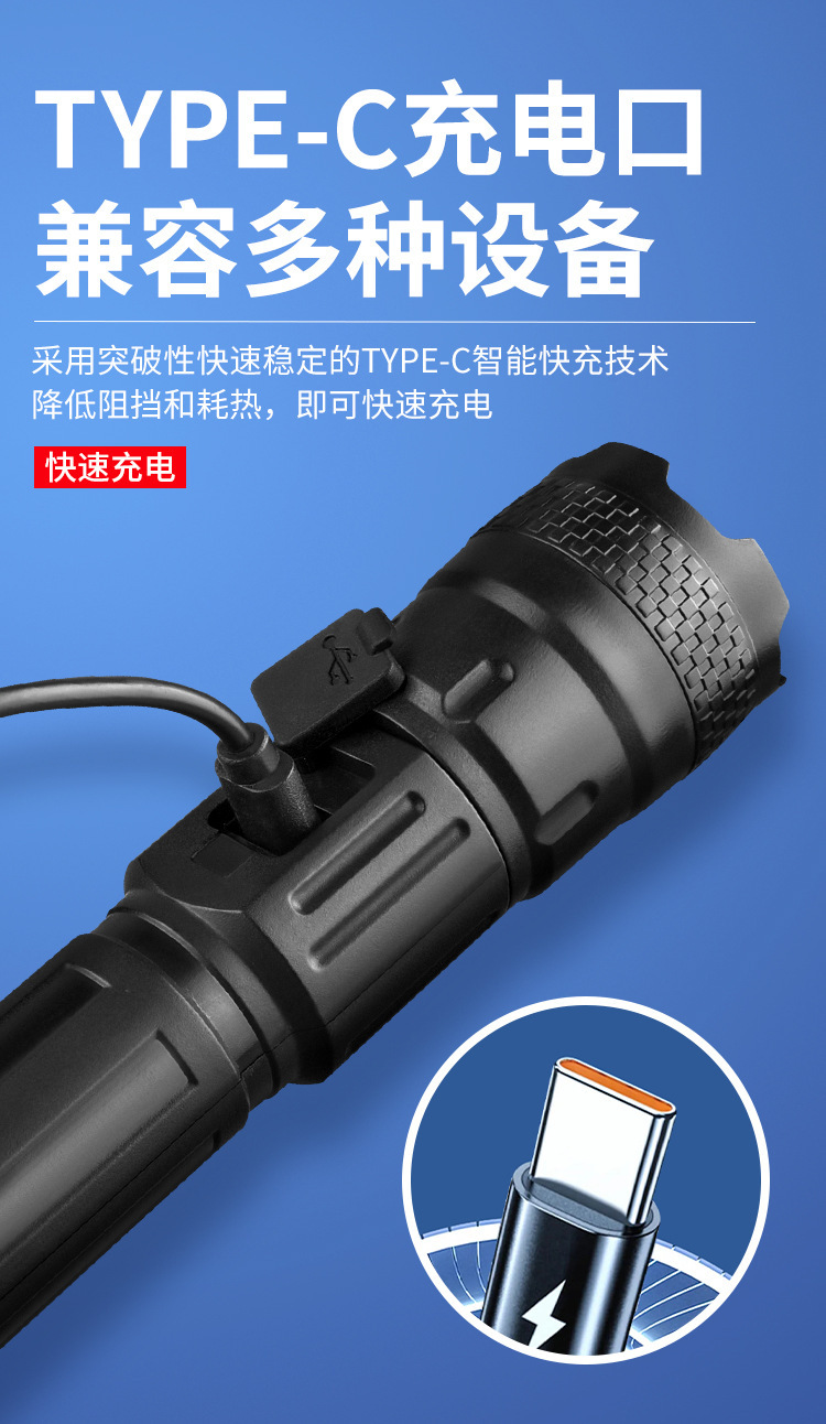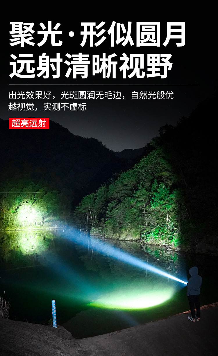 국경 간 야외 순찰 스포트라이트 장거리 강한 빛 손전등 휴대용 충전식 스트레치 텔레스코픽 투광 조명 P50 손전등