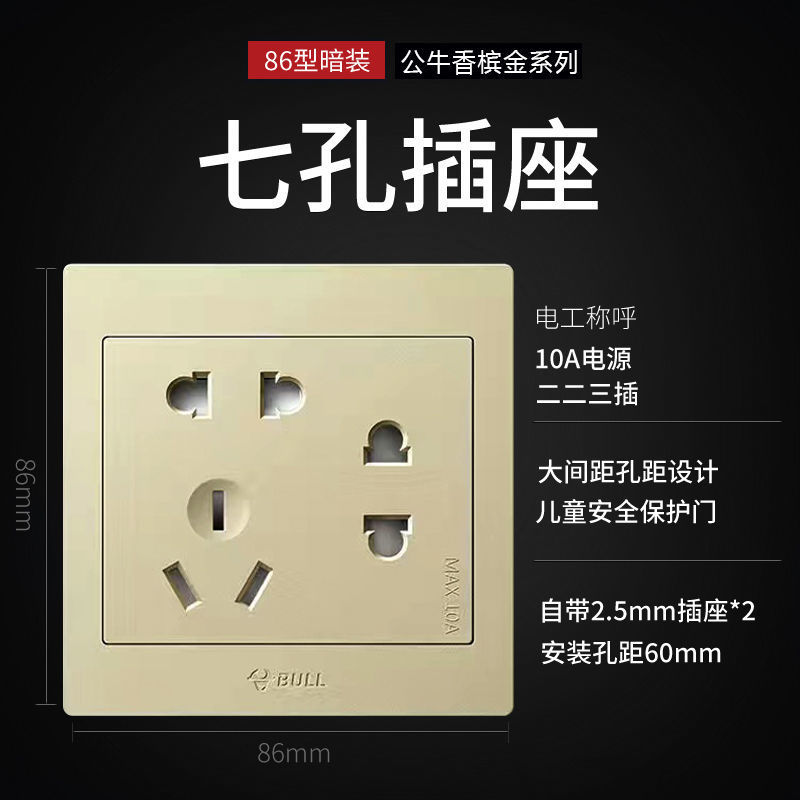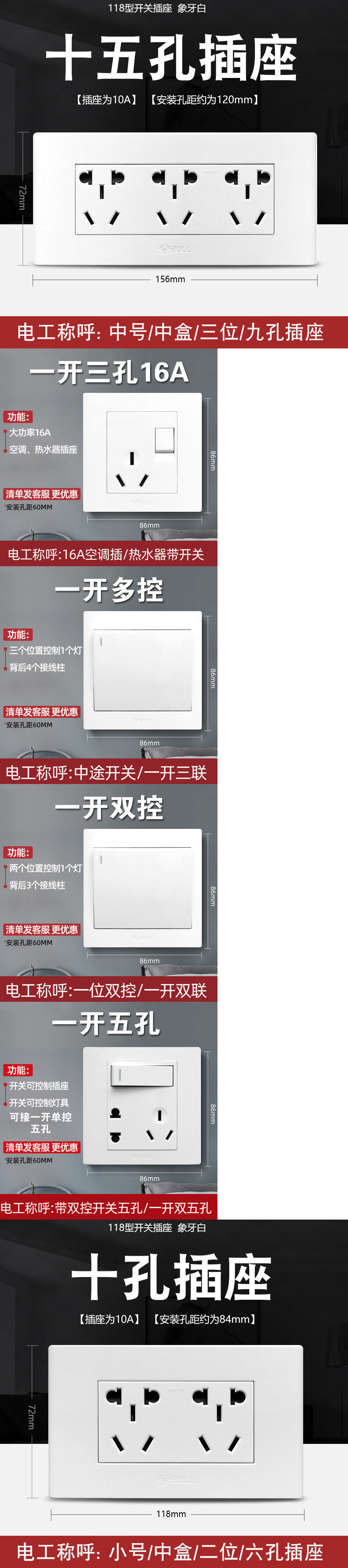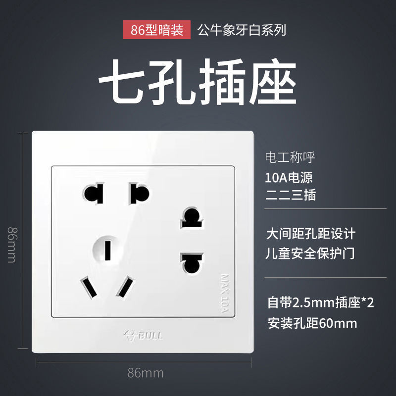 Bull 스위치 패널 스위치 소켓 홈 개선 5홀 2개 및 3개 플러그 1개 개방형 이중 제어 에어컨 소켓 벽 개방형 숨겨진 장착