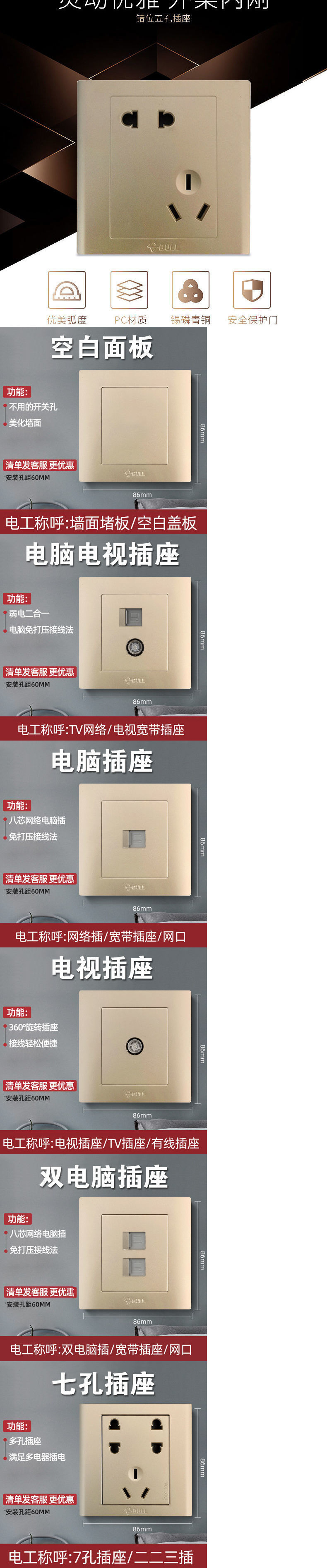 • 샴페인 골드 - 컴퓨터 + TV 소켓