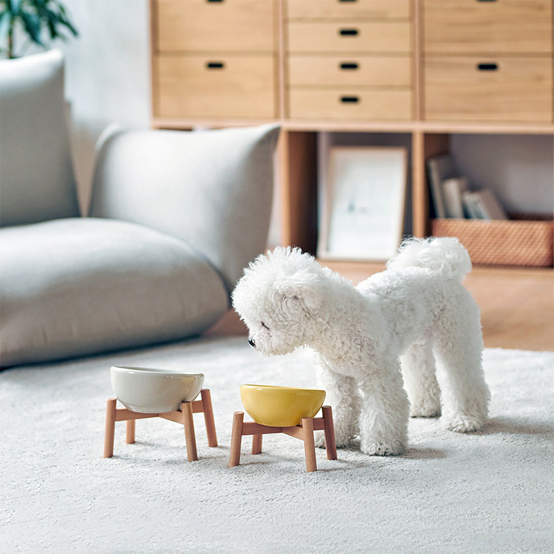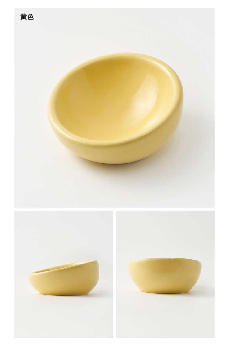• 경사형 도자기 그릇 [노란색] + 대나무 스탠드