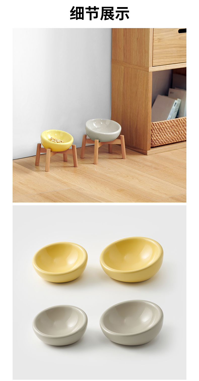 제조업체의 인쇄되지 않은 세라믹 애완 동물 그릇 비스듬한 입 석기 고양이 그릇 단단한 나무 높은 랙은 자궁 경부 척추를 보호합니다 음식 그릇 좋은 품질의 개 그릇스토어 가기