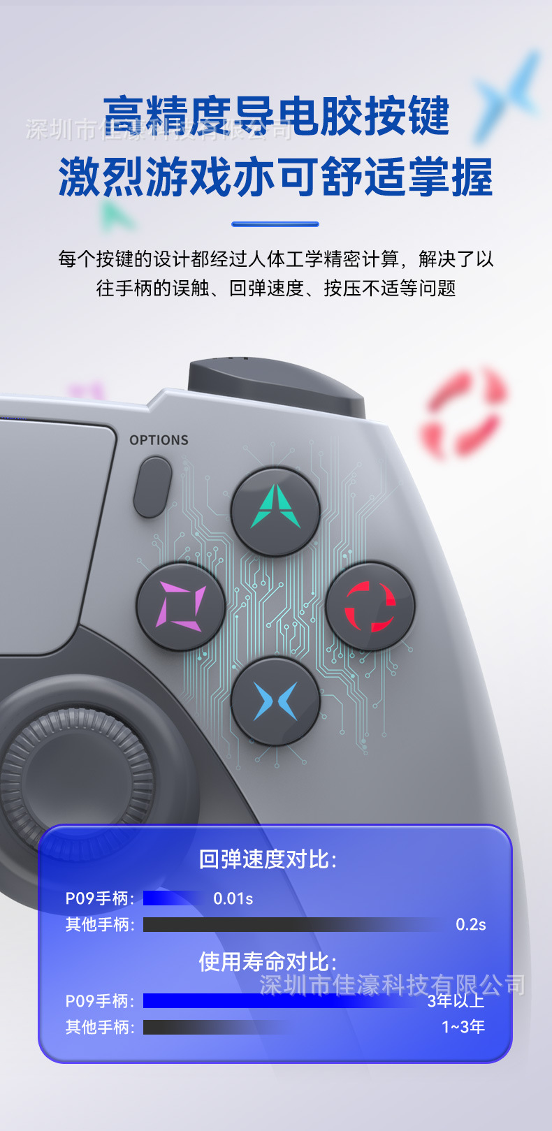 ④导电胶按键,电竞3D摇杆,模拟量导胶扳机;