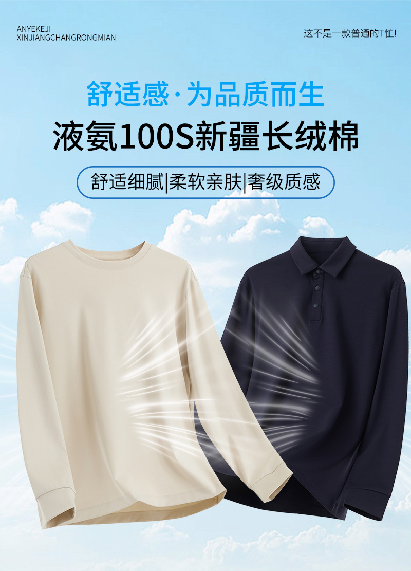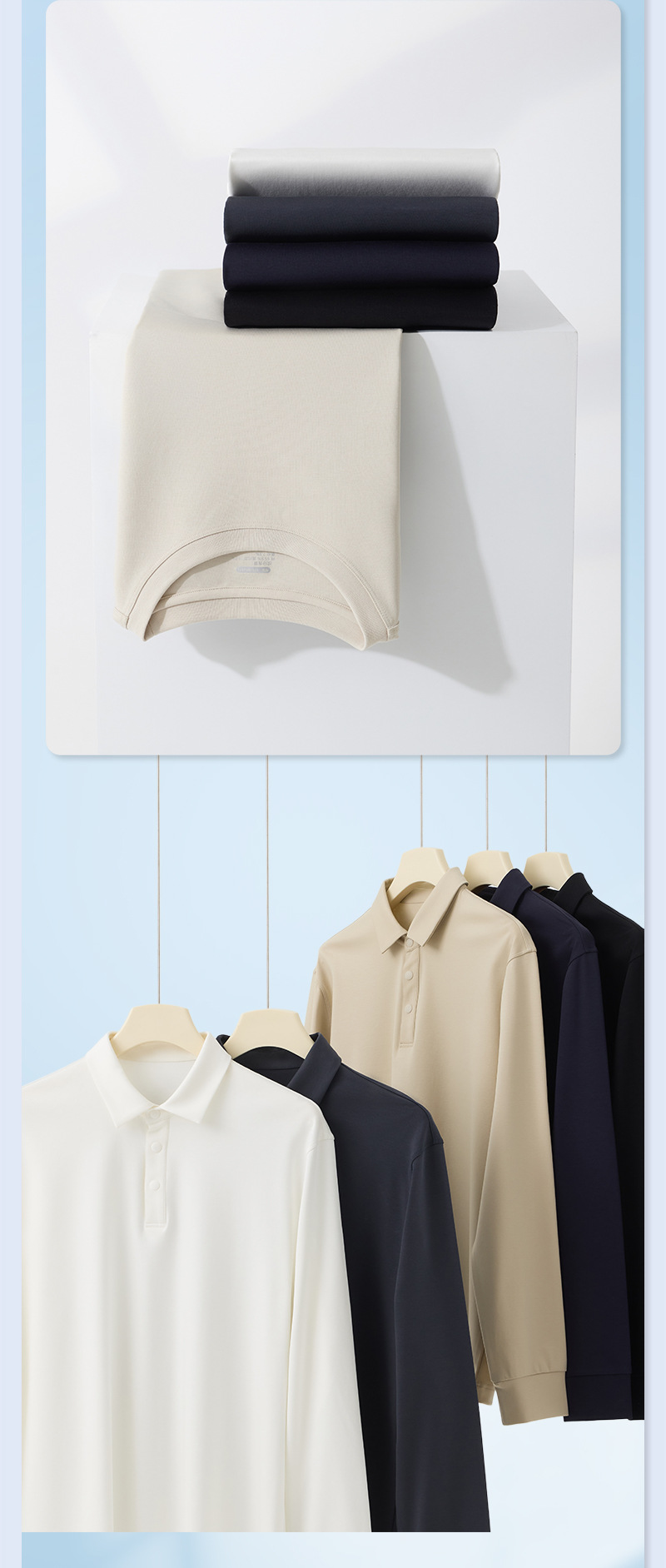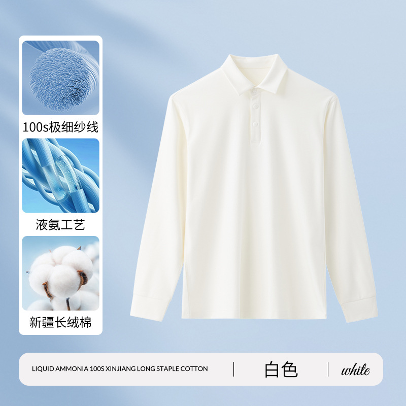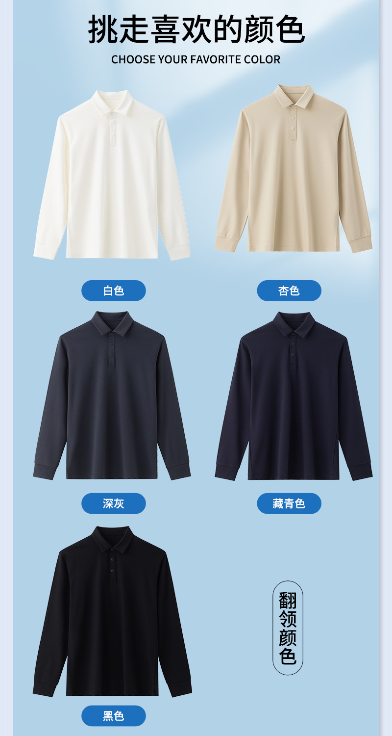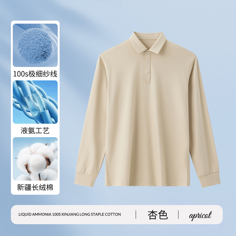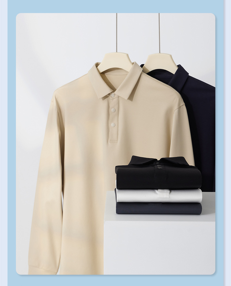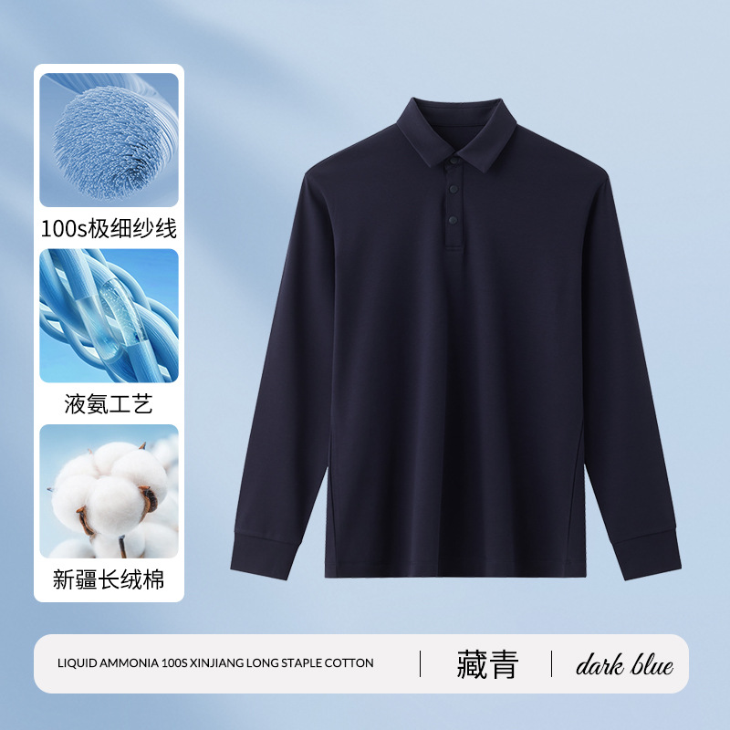 100s 하이 엔드 240g 신장 긴 스테이플 코튼 셔츠 칼라 폴로 남성 긴팔 티셔츠 솔리드 컬러 비즈니스 남성 폴로 셔츠스토어 가기