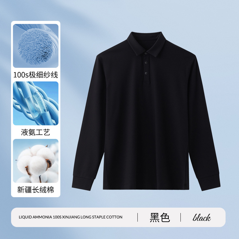 100s 하이 엔드 240g 신장 긴 스테이플 코튼 셔츠 칼라 폴로 남성 긴팔 티셔츠 솔리드 컬러 비즈니스 남성 폴로 셔츠