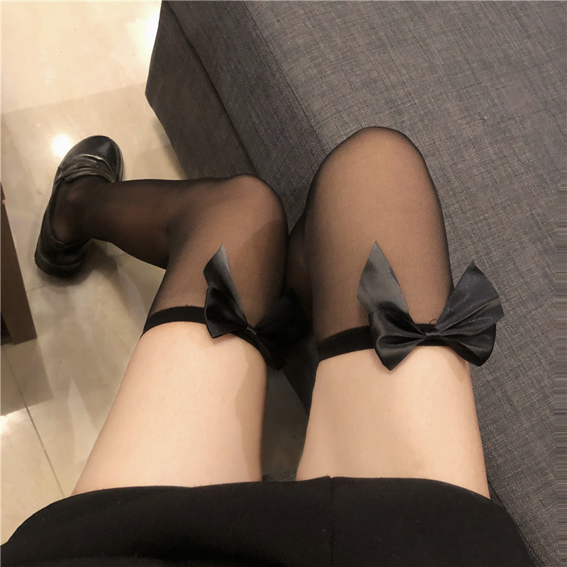 블랙 실크 보우 로리타 JK 스타킹 얇은 중간 길이 봄 여름 섹시 스타킹 네트스토어 가기