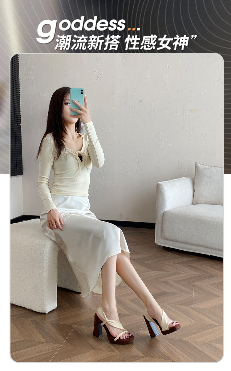 여성용 방수 플랫폼 두꺼운 굽 두꺼운 밑창 하이힐, 프렌치 여름 신스타일, 스커트와 매치하기, 아름다운 기질, 아우터 샌들 및 슬리퍼스토어 가기