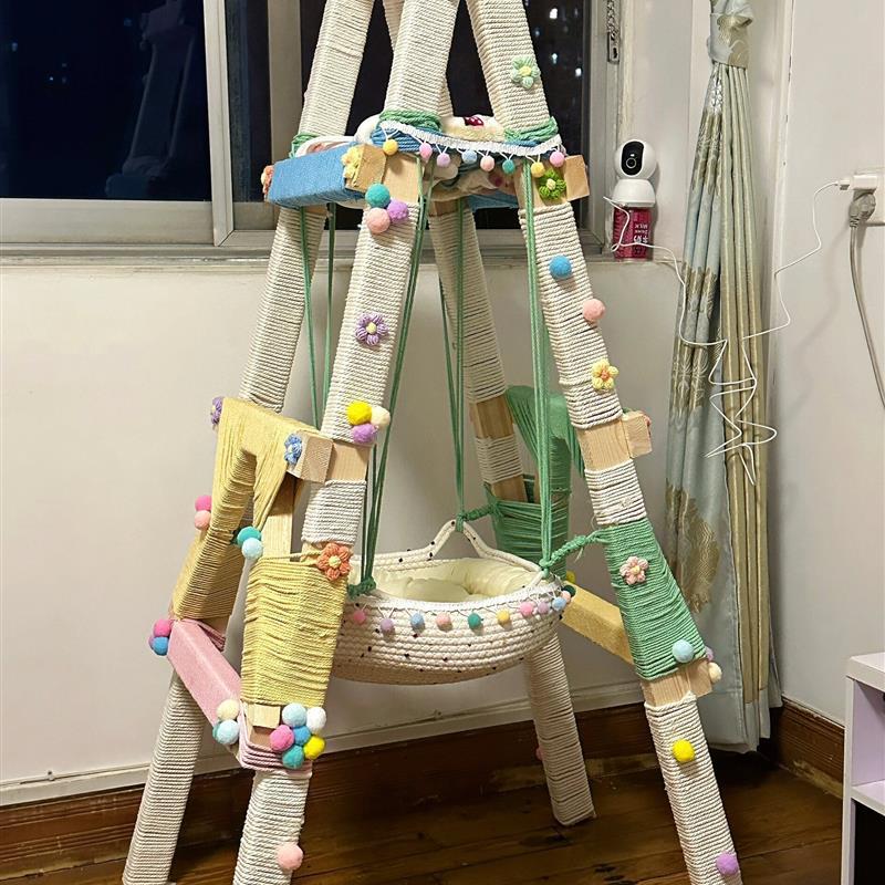 DIY 고양이 클라이밍 프레임 사과나무 로프 고양이 스크래치 컬럼 녹색 천연 대마 로프 수제 수제 사다리 개조 재료 대마 로프스토어 가기