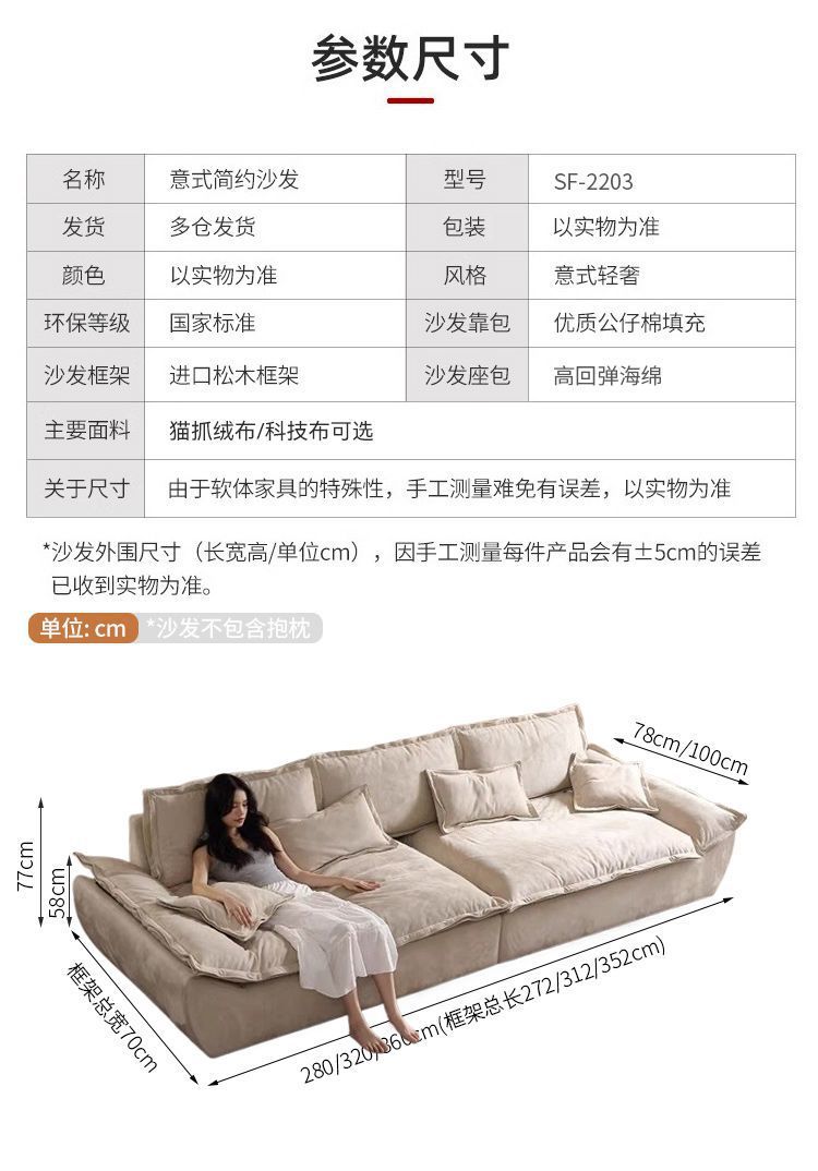 이탈리아 미니멀리스트 기술 천 소파 거실 작은 아파트 현대적인 간단한 3인용 홈 대형 직선형 범선 소파스토어 가기