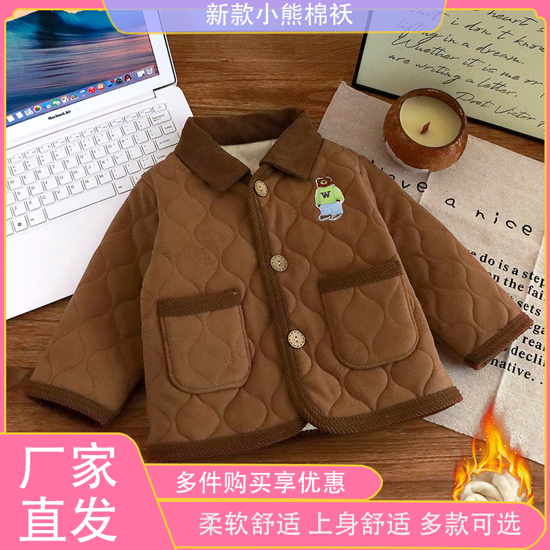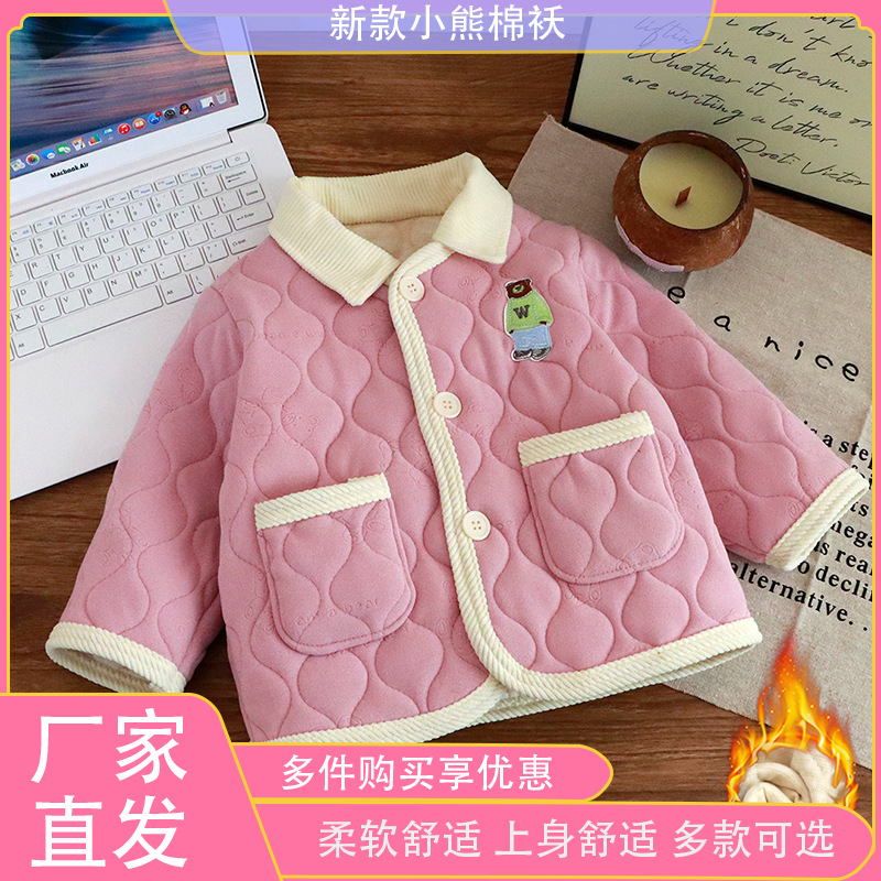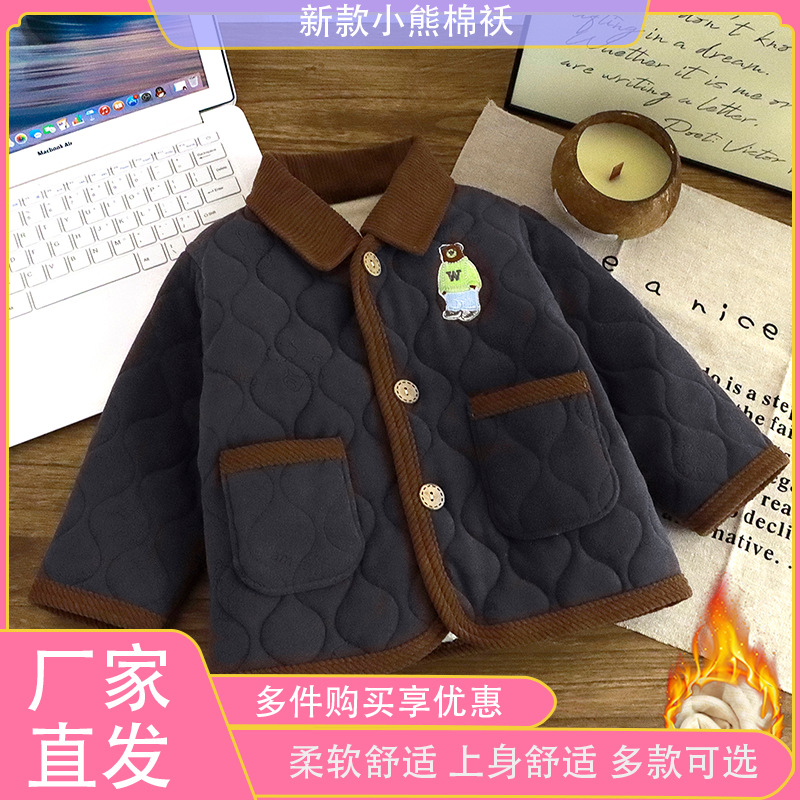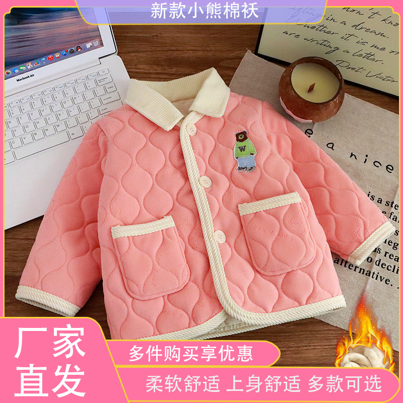 소녀와 소년 퀼트 재킷 2025 겨울 새 스타일 어린이 한국 스타일 유행 수 놓은 두꺼운 겨울 면화 코트스토어 가기
