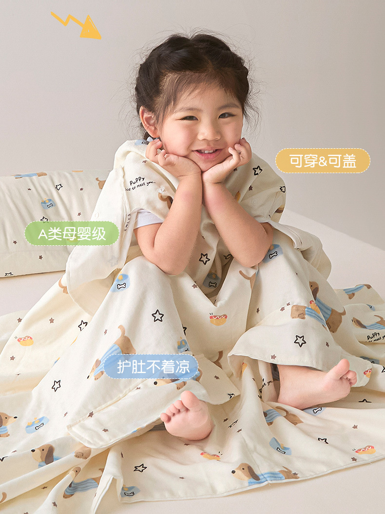 클래스 A 순면 안티 킥 이불 4 겹 순면 여름 시원한 이불 어린이 침낭 여름 에어컨 이불 아기 배꼽 보호 이불