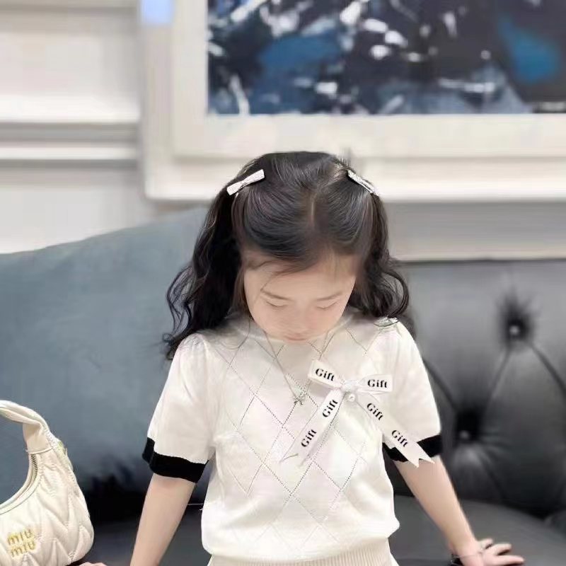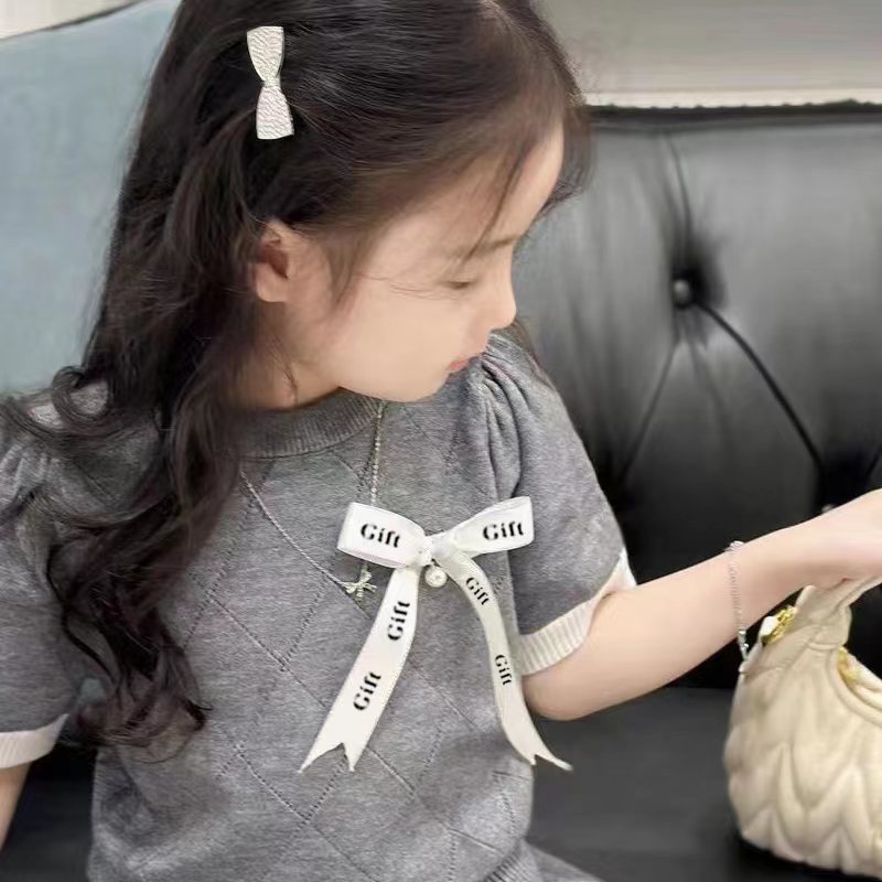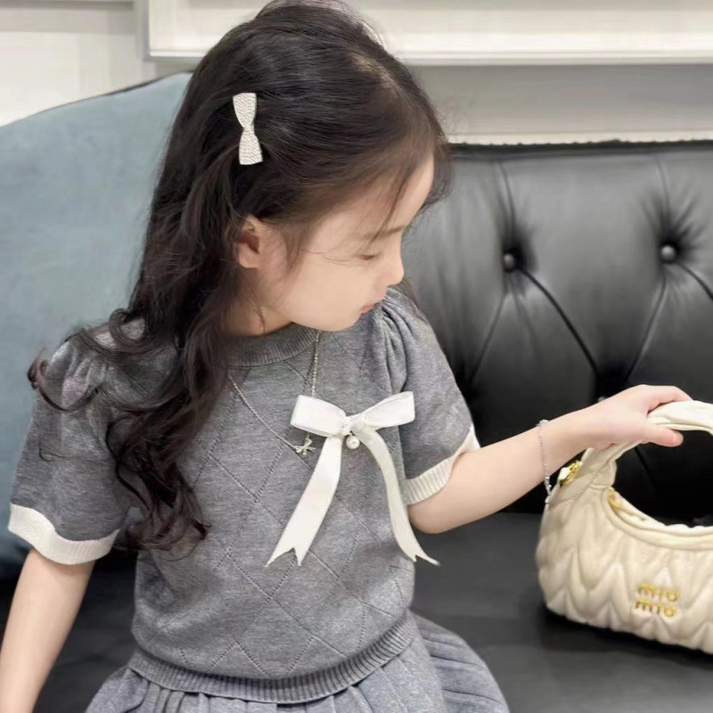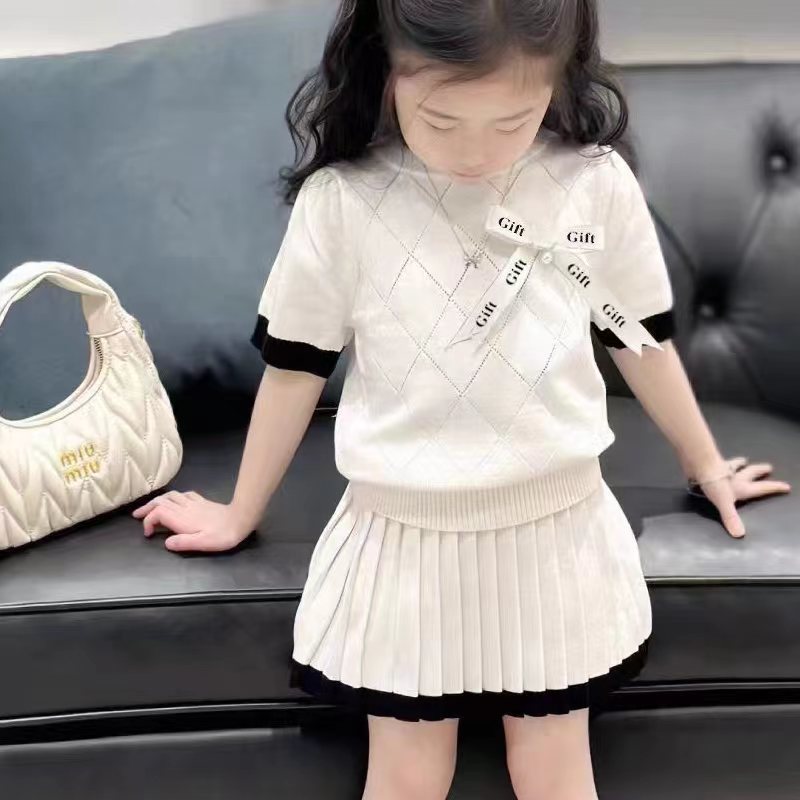 DX50 어린이 활 반팔 니트 반팔 여름 한국 스타일 아기 중공 얇은 공주 정장