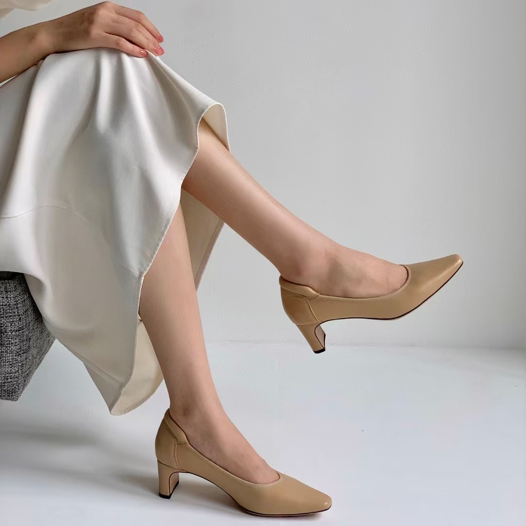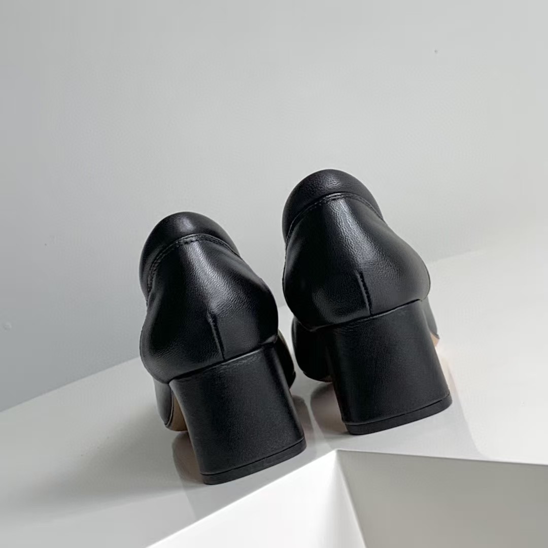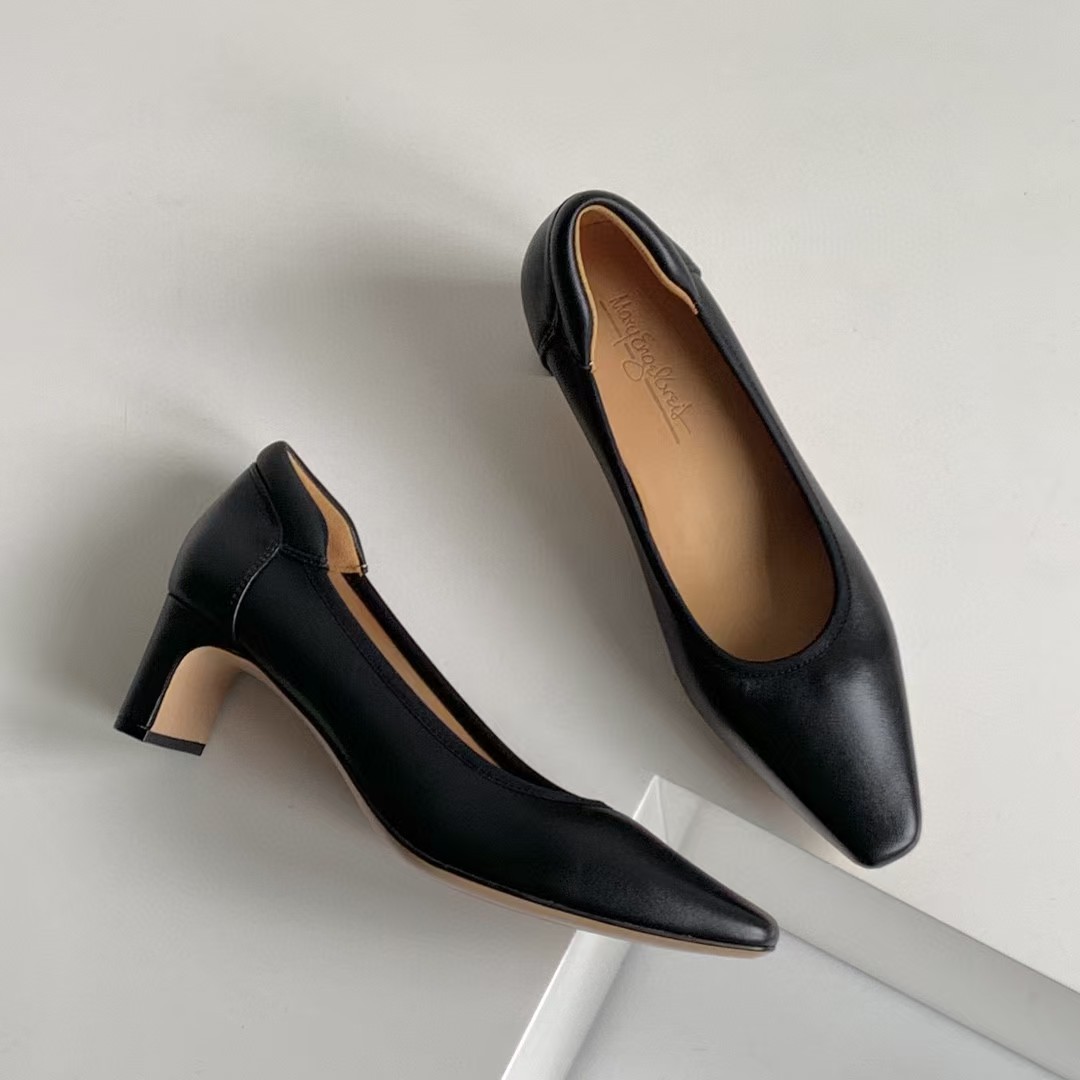 양가죽 스퀘어힐 5cm 싱글슈즈~ 천연가죽 여성화 스퀘어토 펌프스 워크슈즈 탄성 백팩 힐이 떨어지는 걸림 방지 하이힐스토어 가기