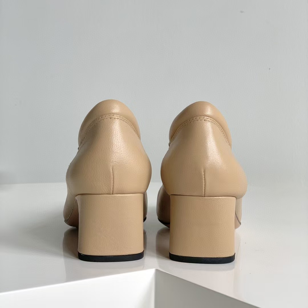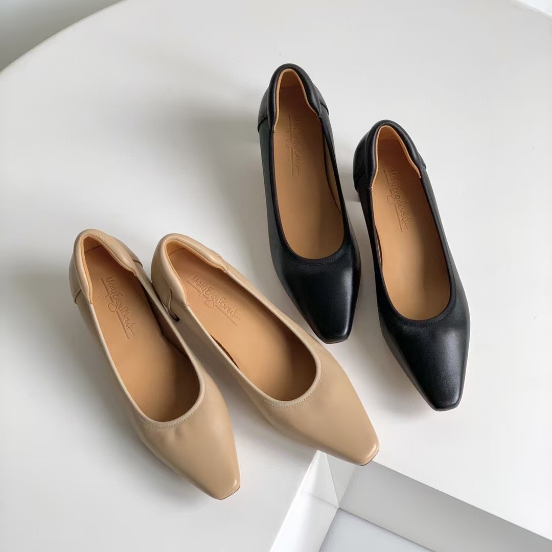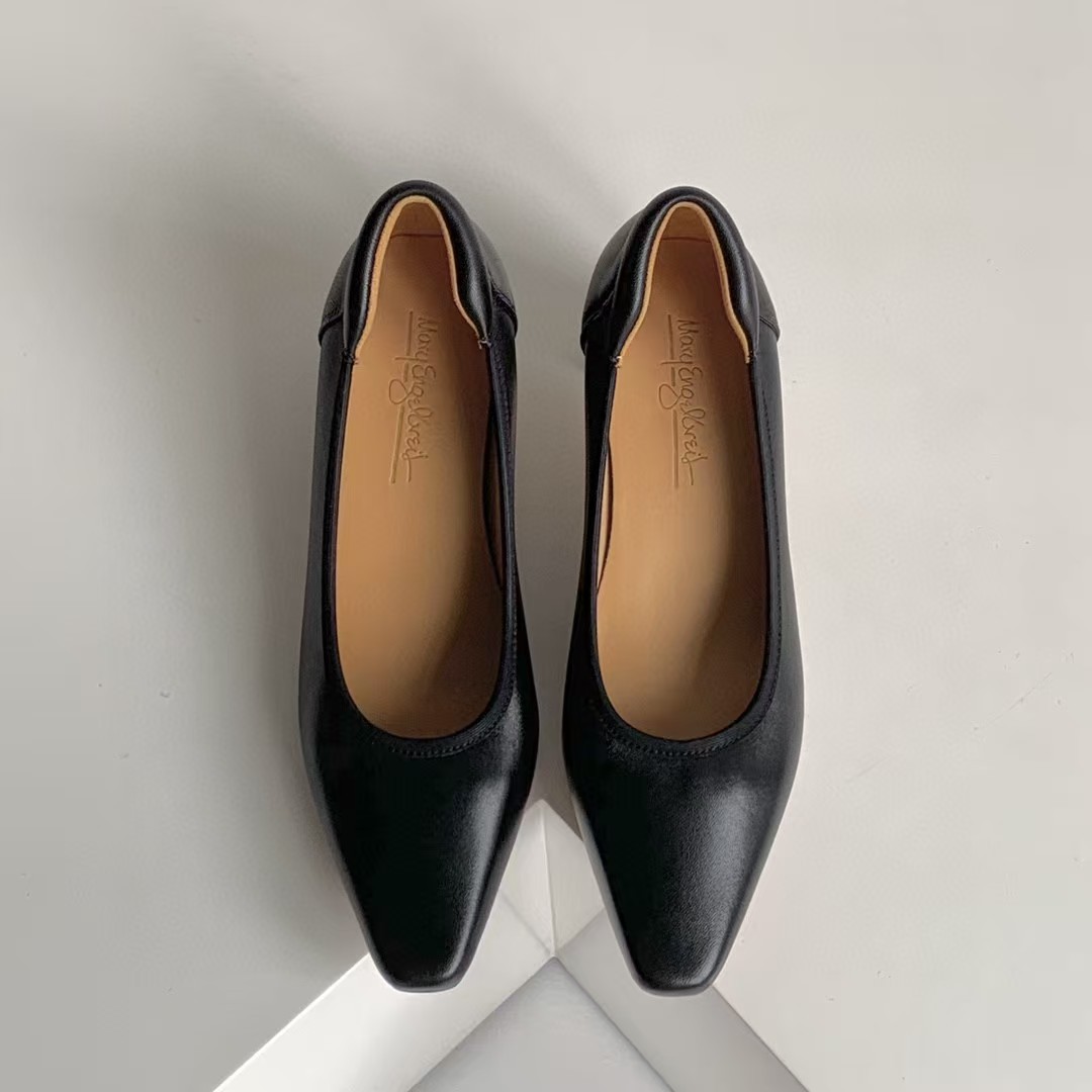 可以跑步的高跟鞋系列!淡淡的法式优雅大女主单鞋!简洁设计,小方头元素的融入,轻复古!后跟乳胶枕头,鞋口一圈松紧包口,舒服到天高任我飞的感觉!5cm与众不同的小扁跟透着优雅与知性!搭配通勤装/知性的套装裙装,气质拿捏稳稳的!楦型秀气且很包脚,非常舒服! 鞋面:进口混种羊皮   内里:进口苯染牛皮 大底:橡胶底       码数:35–39