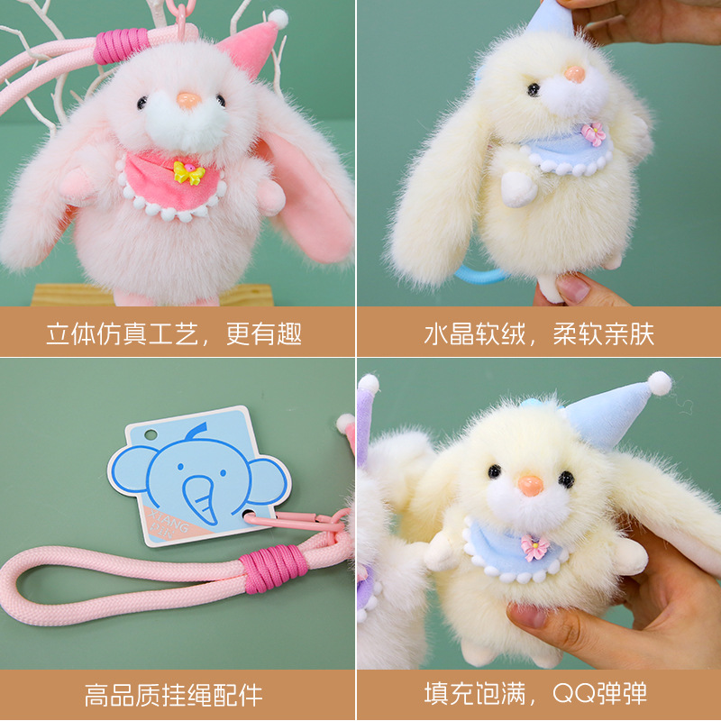 귀여운 유럽 밍크 토끼 펜던트, 털이 많은 큰 귀 토끼 봉제 인형, 인터넷 연예인 인기 학교 가방 펜던트 배치스토어 가기