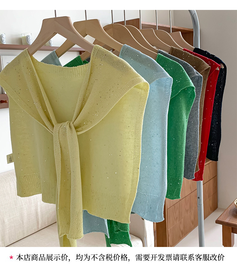 고급스러운 느낌의 숄 니트, 사무실 에어컨실, 경추 보호 칼라, 조끼, 가짜 칼라, 아이스 실크 스팽글 작은 숄스토어 가기