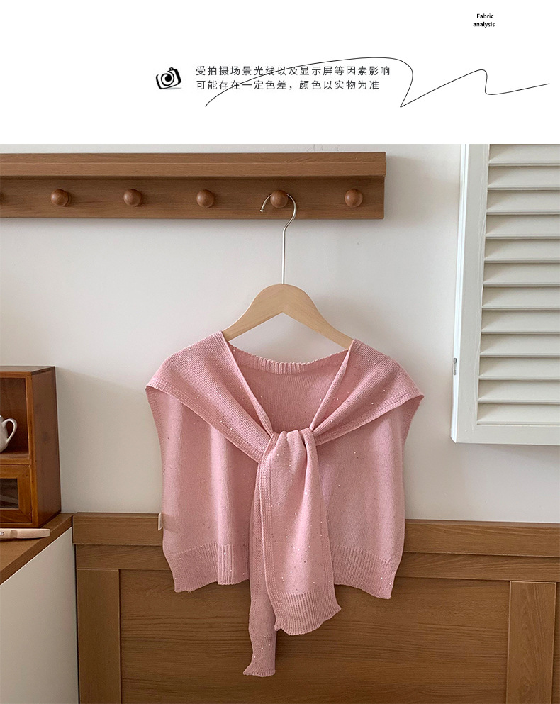 고급스러운 느낌의 숄 니트, 사무실 에어컨실, 경추 보호 칼라, 조끼, 가짜 칼라, 아이스 실크 스팽글 작은 숄
