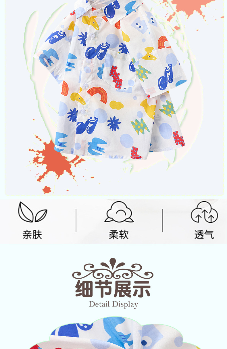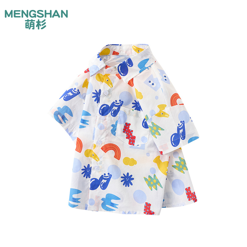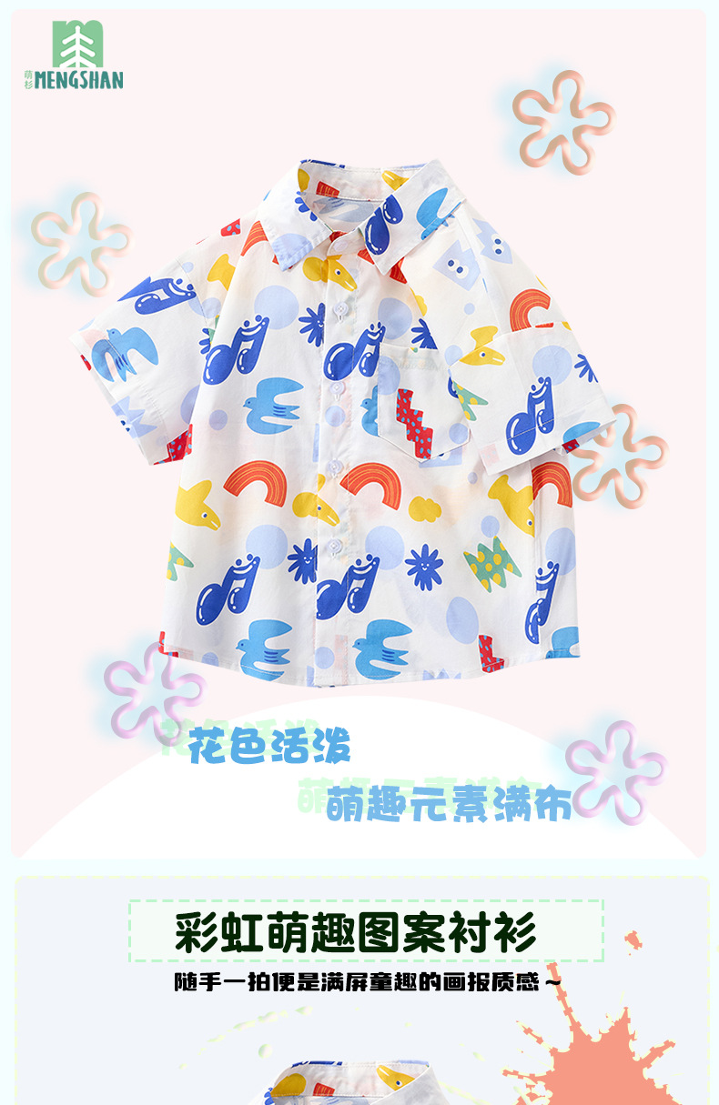 여름 아동복 반팔 셔츠, 음표, 새, 무지개, 올오버 프린트, 귀엽고 캐주얼한 루즈핏 상의, 제비 무늬가 올오버 프린트스토어 가기
