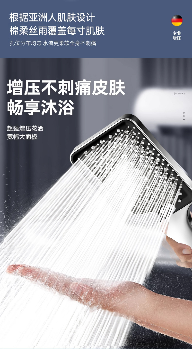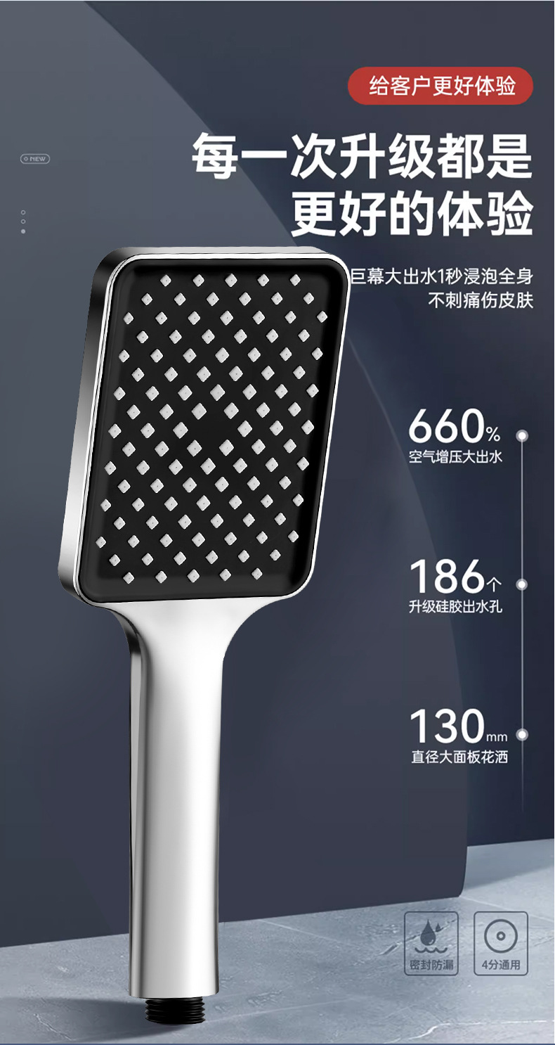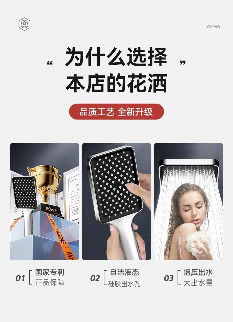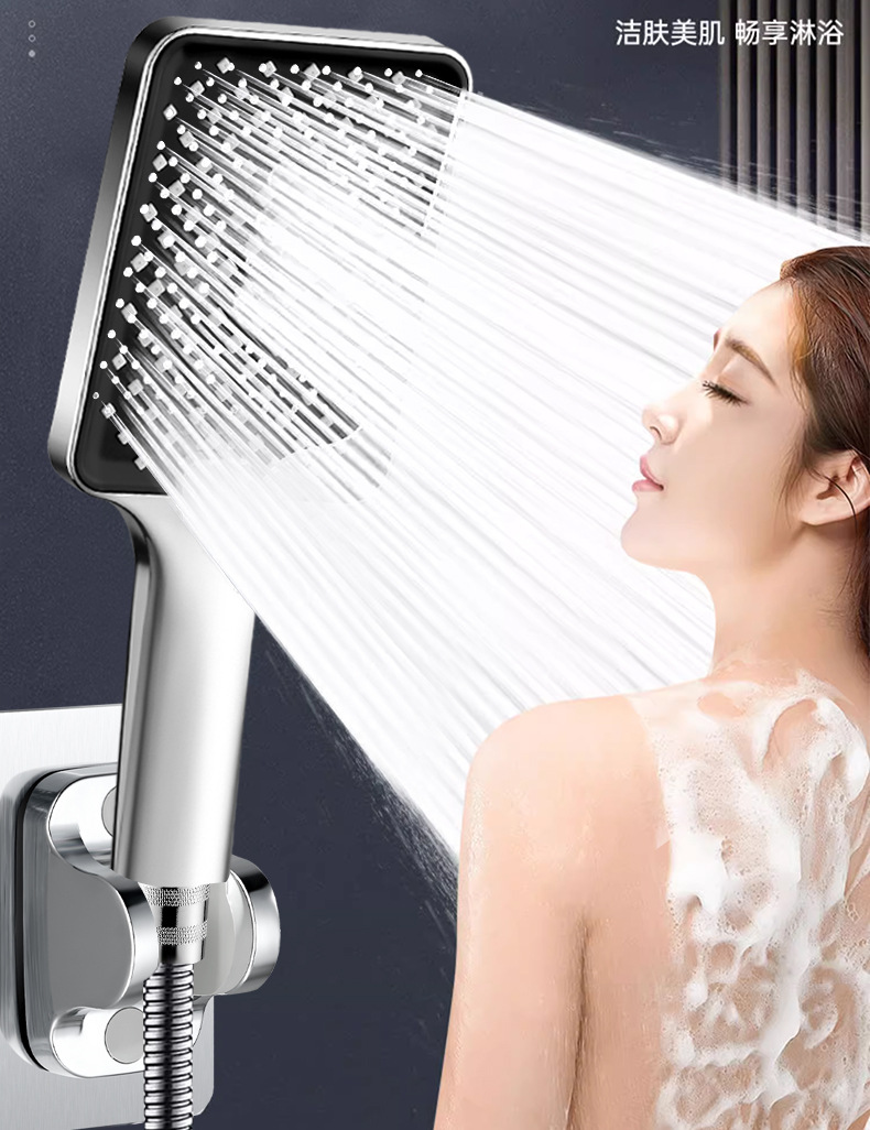 대용량 물량을 갖춘 사각형 가압 샤워 헤드, 가정용 욕실 수도꼭지, 샤워 헤드, 레인 샤워 호스 세트스토어 가기
