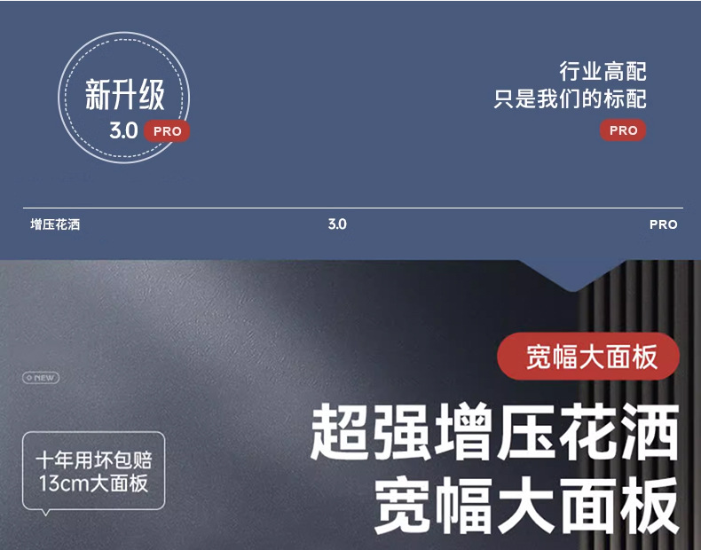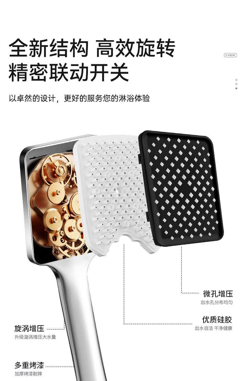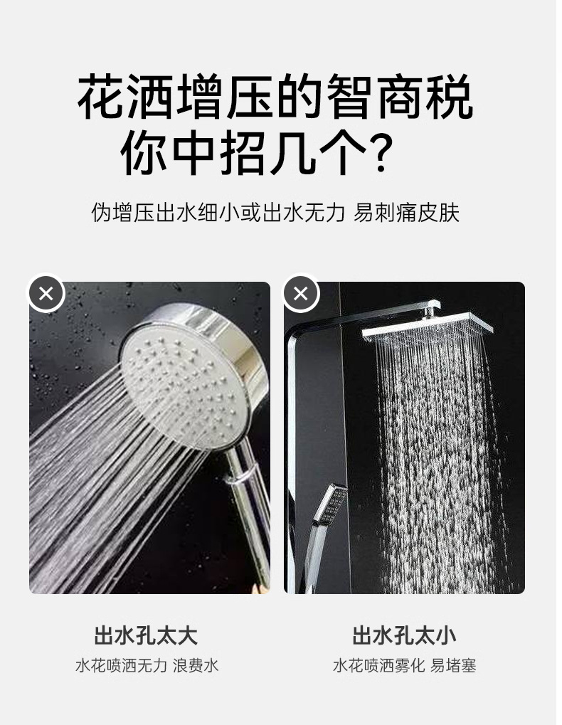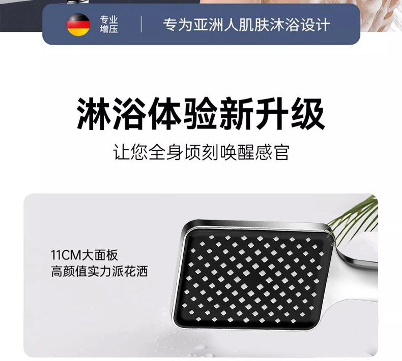 대용량 물량을 갖춘 사각형 가압 샤워 헤드, 가정용 욕실 수도꼭지, 샤워 헤드, 레인 샤워 호스 세트스토어 가기