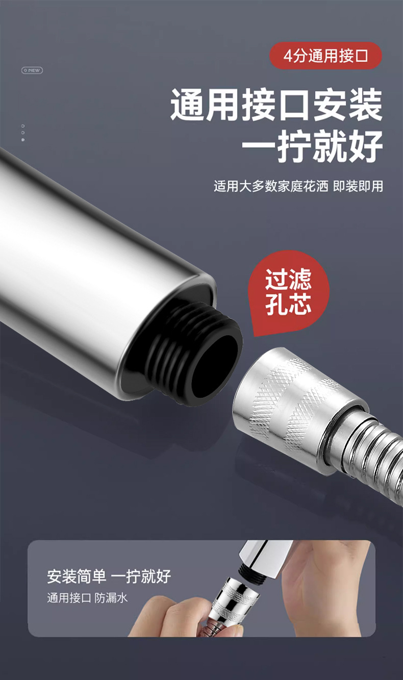 • 실버 대용량 샤워기 + 1.5m 스테인레스 스틸 암호화 파이프