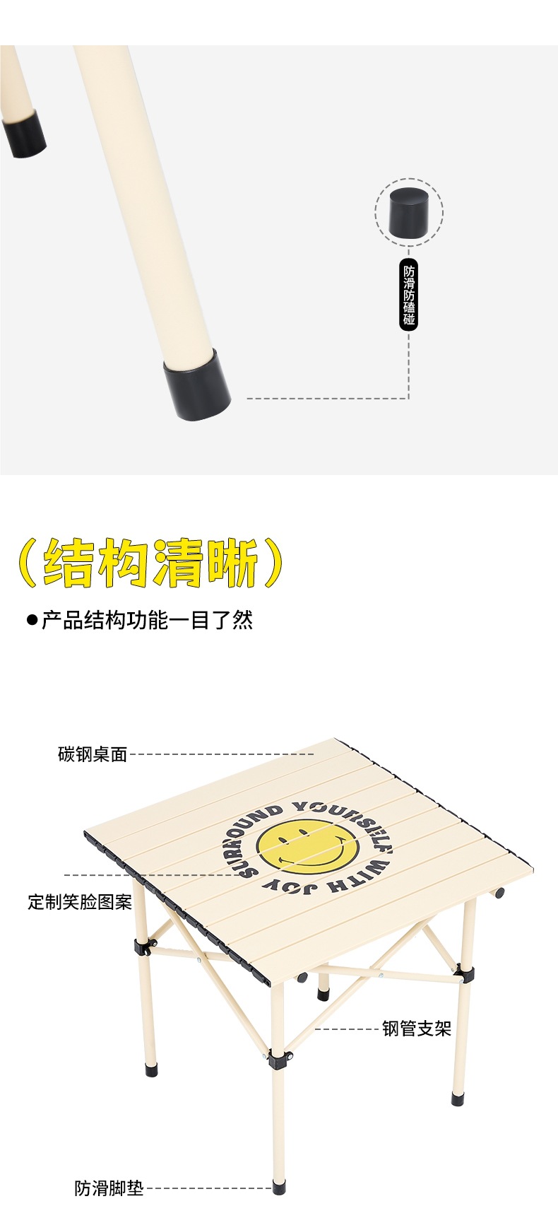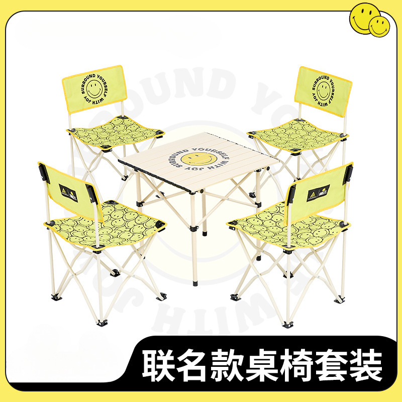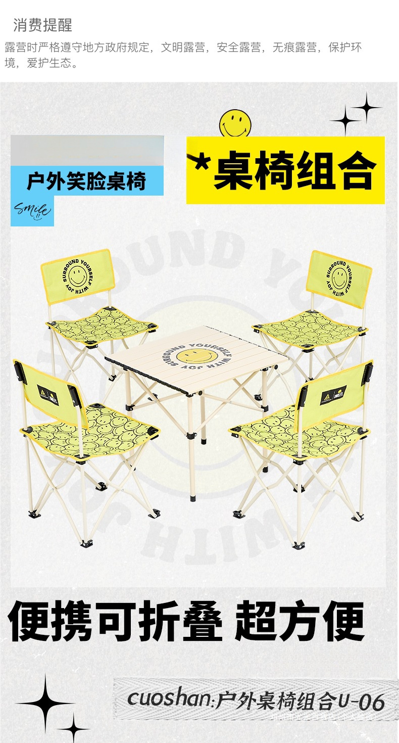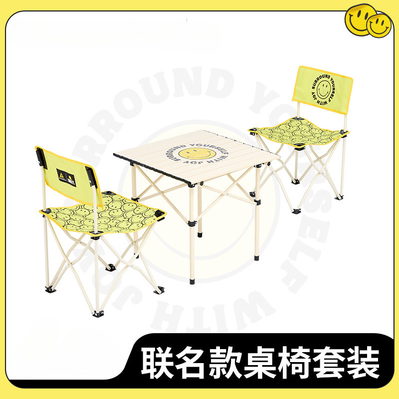 Yumi 야외 웃는 얼굴 공동 브랜드 접이식 테이블 피크닉 테이블 캠핑 장비 계란말이 테이블 세트 야외 캠핑 테이블과 의자