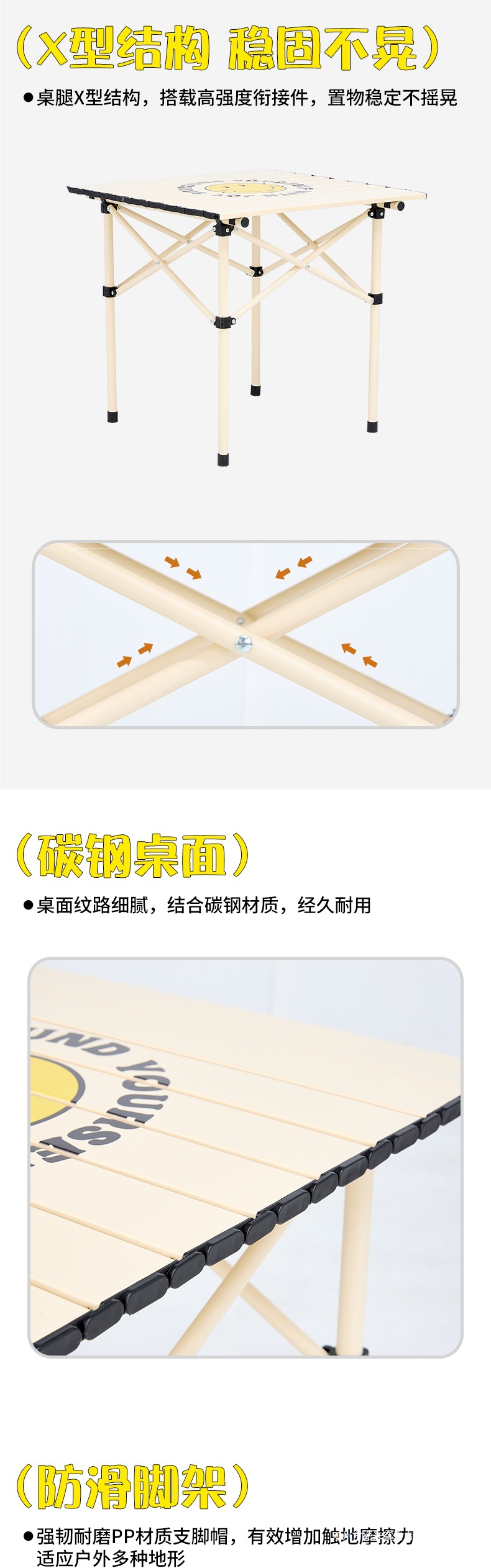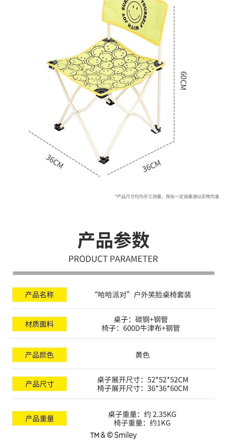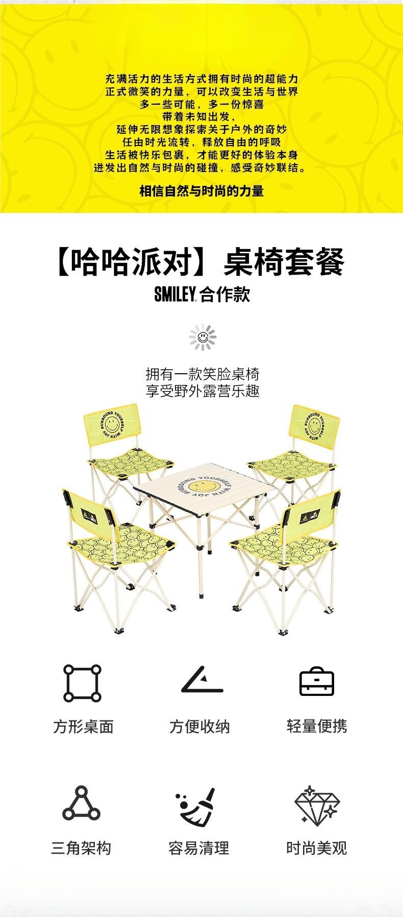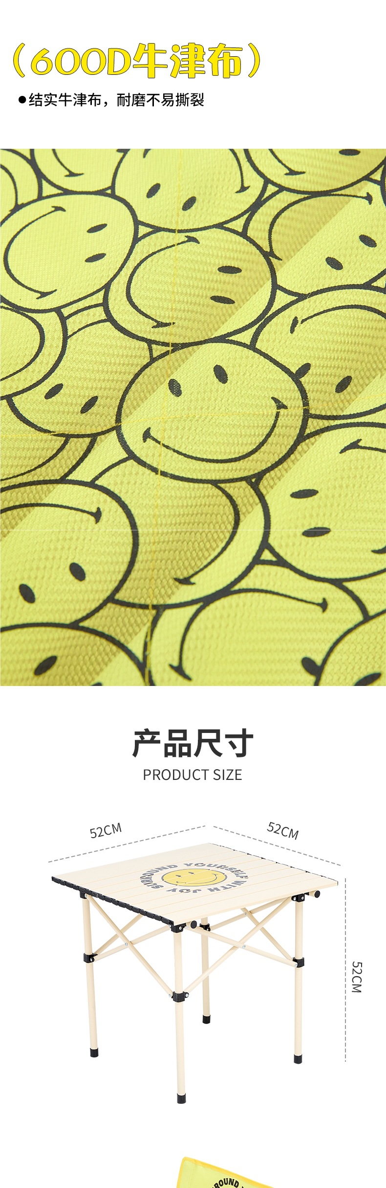 Yumi 야외 웃는 얼굴 공동 브랜드 접이식 테이블 피크닉 테이블 캠핑 장비 계란말이 테이블 세트 야외 캠핑 테이블과 의자