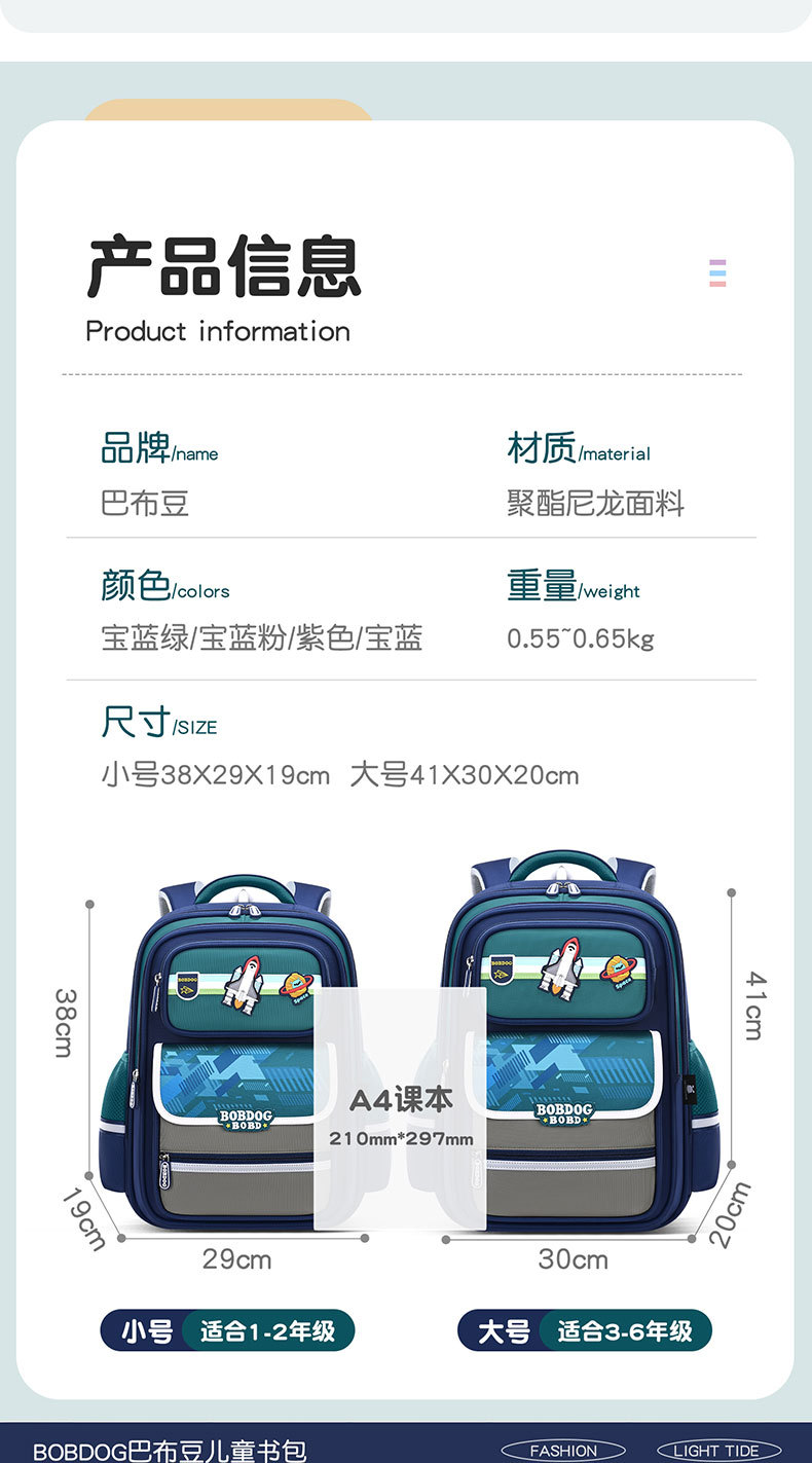 Babudou의 새로운 초등학교 가방 1-3-6 학년 어린이 배낭 부담 감소 척추 보호 소년 방지 책가방 여성스토어 가기
