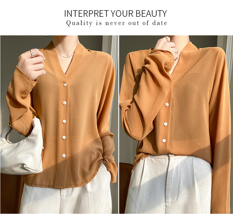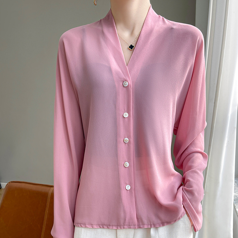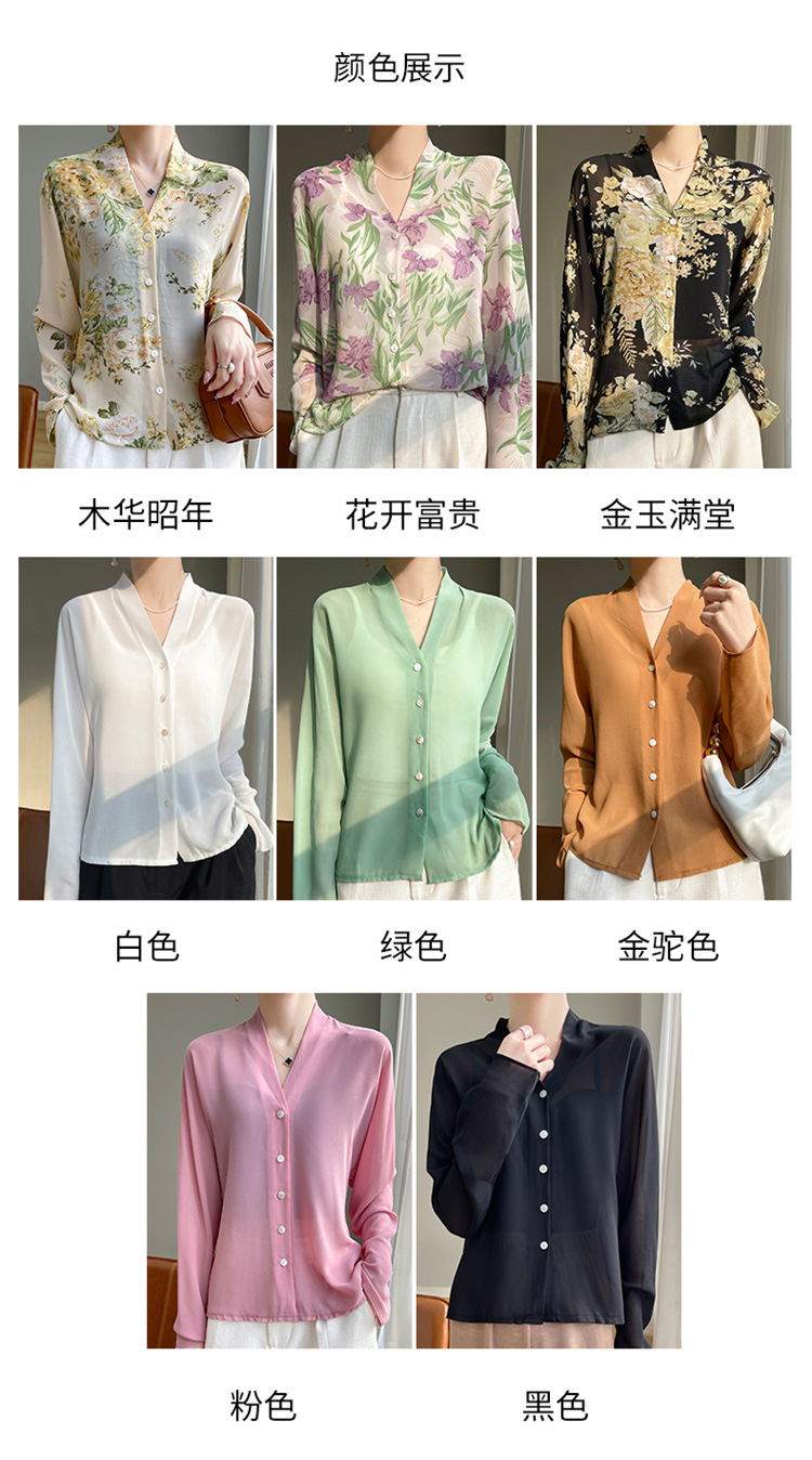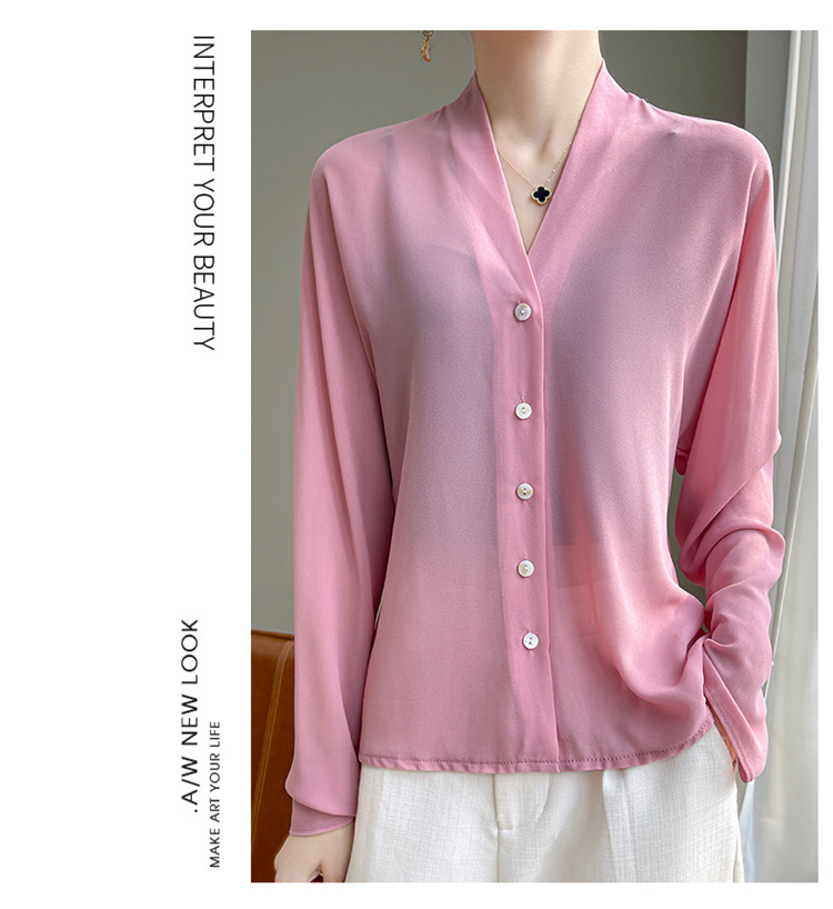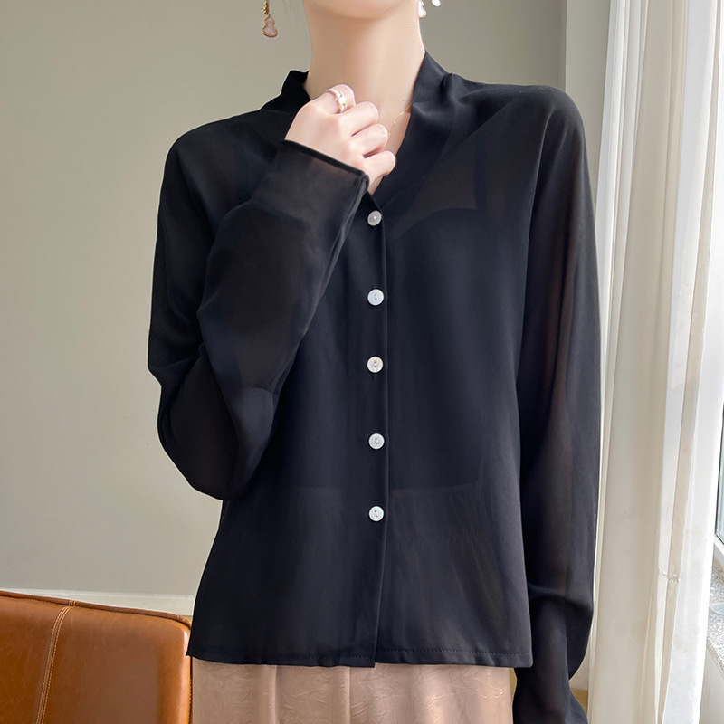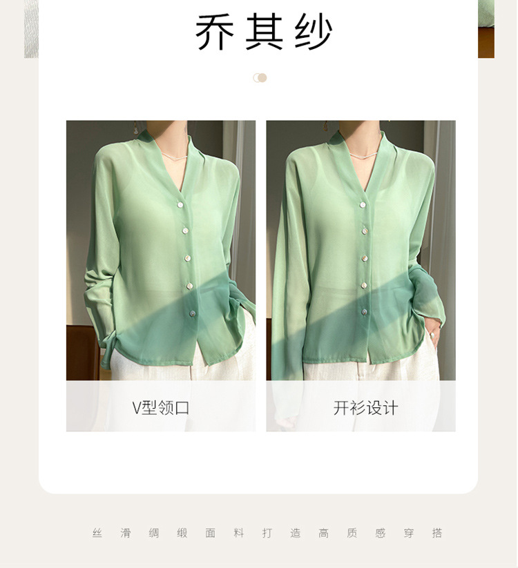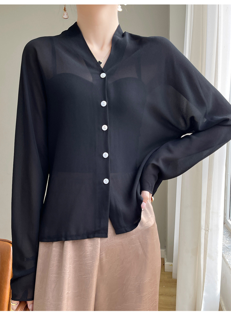 Georgette 여름 신작 얇은 자외선 차단 셔츠 여성용 V 넥 긴팔 니트 카디건 재킷 약간 반투명 에어컨 셔츠
