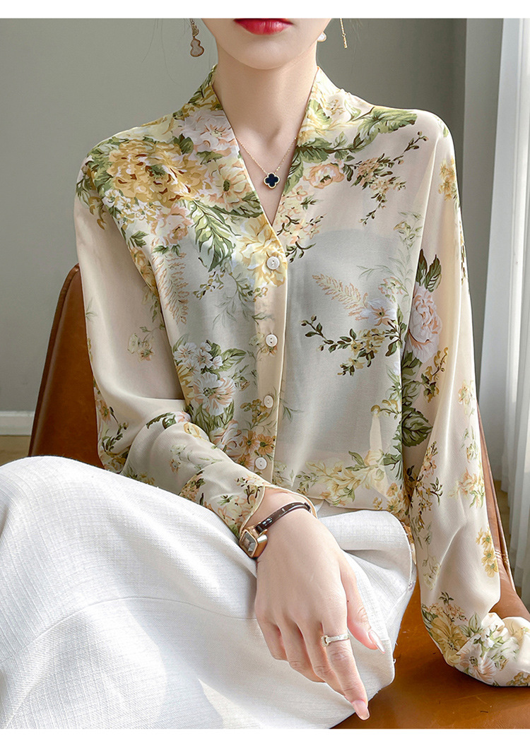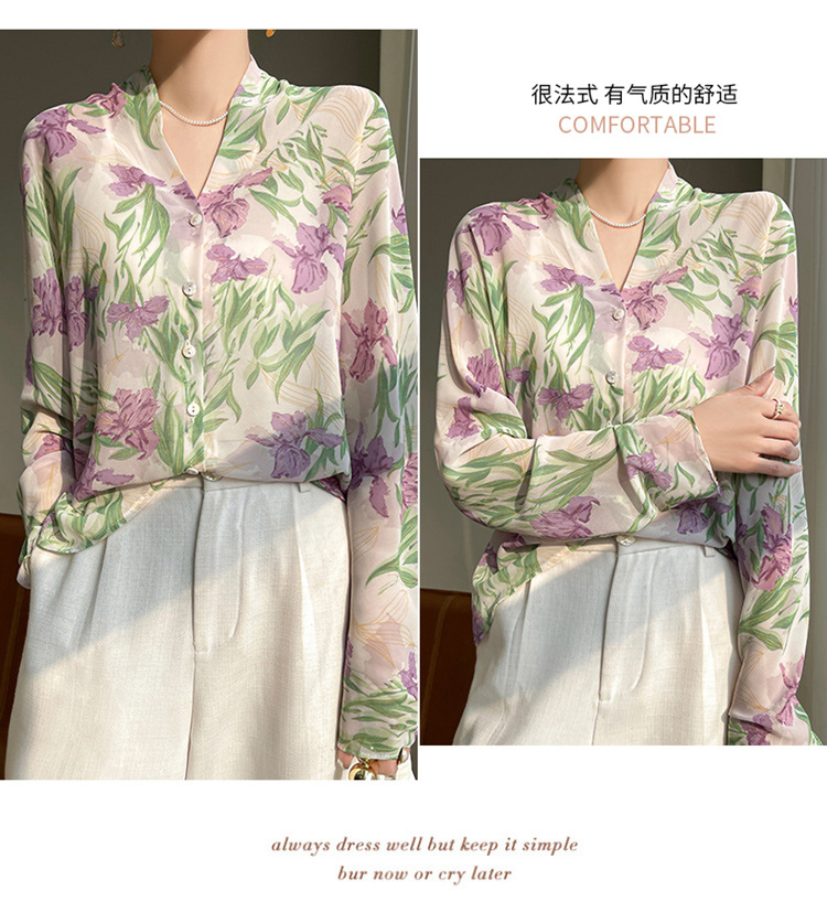 Georgette 여름 신작 얇은 자외선 차단 셔츠 여성용 V 넥 긴팔 니트 카디건 재킷 약간 반투명 에어컨 셔츠스토어 가기
