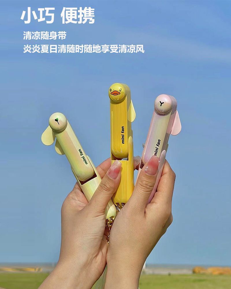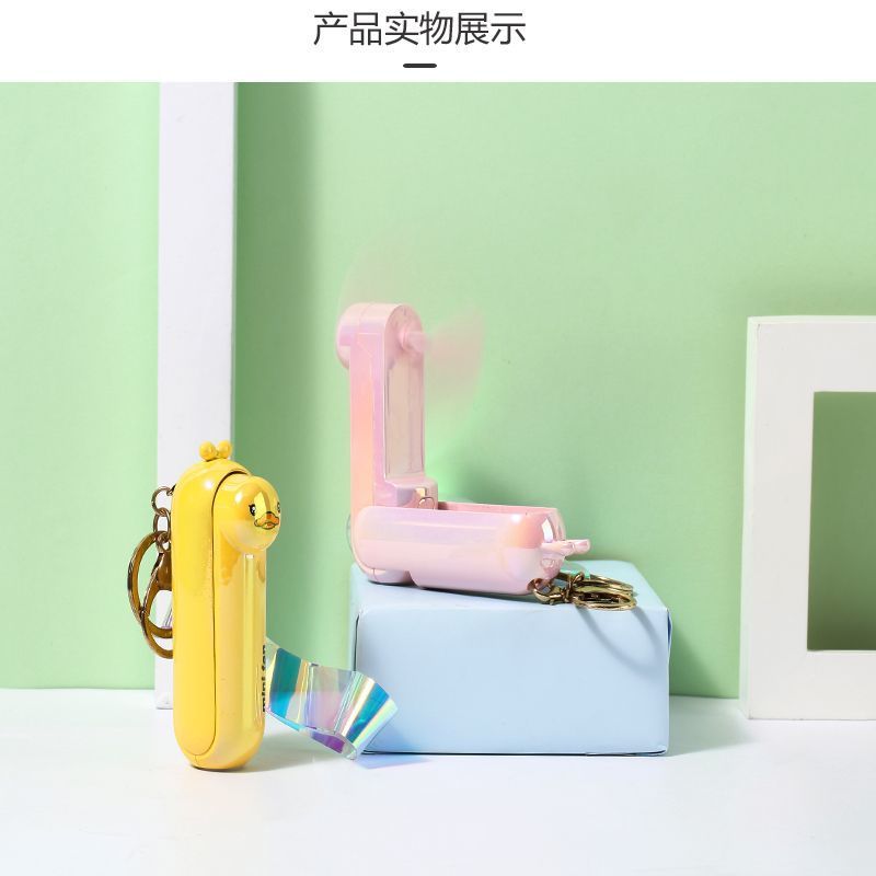 새로운 키 체인 작은 팬 USB 충전 휴대용 만화 귀여운 미니 컴팩트 휴대용 접는 야간 조명 어린이
