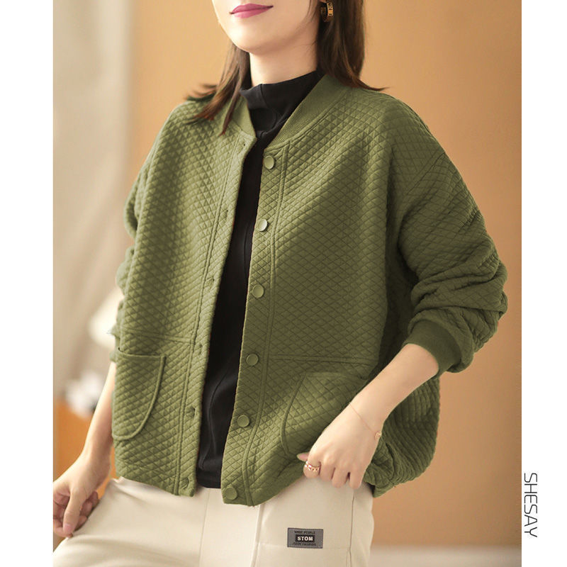체크무늬 코트, 패셔너블한 루즈한 플러스사이즈 아우터 여성 자켓, 가을 신상 만능 야구 유니폼, 트렌디한 니치탑스토어 가기