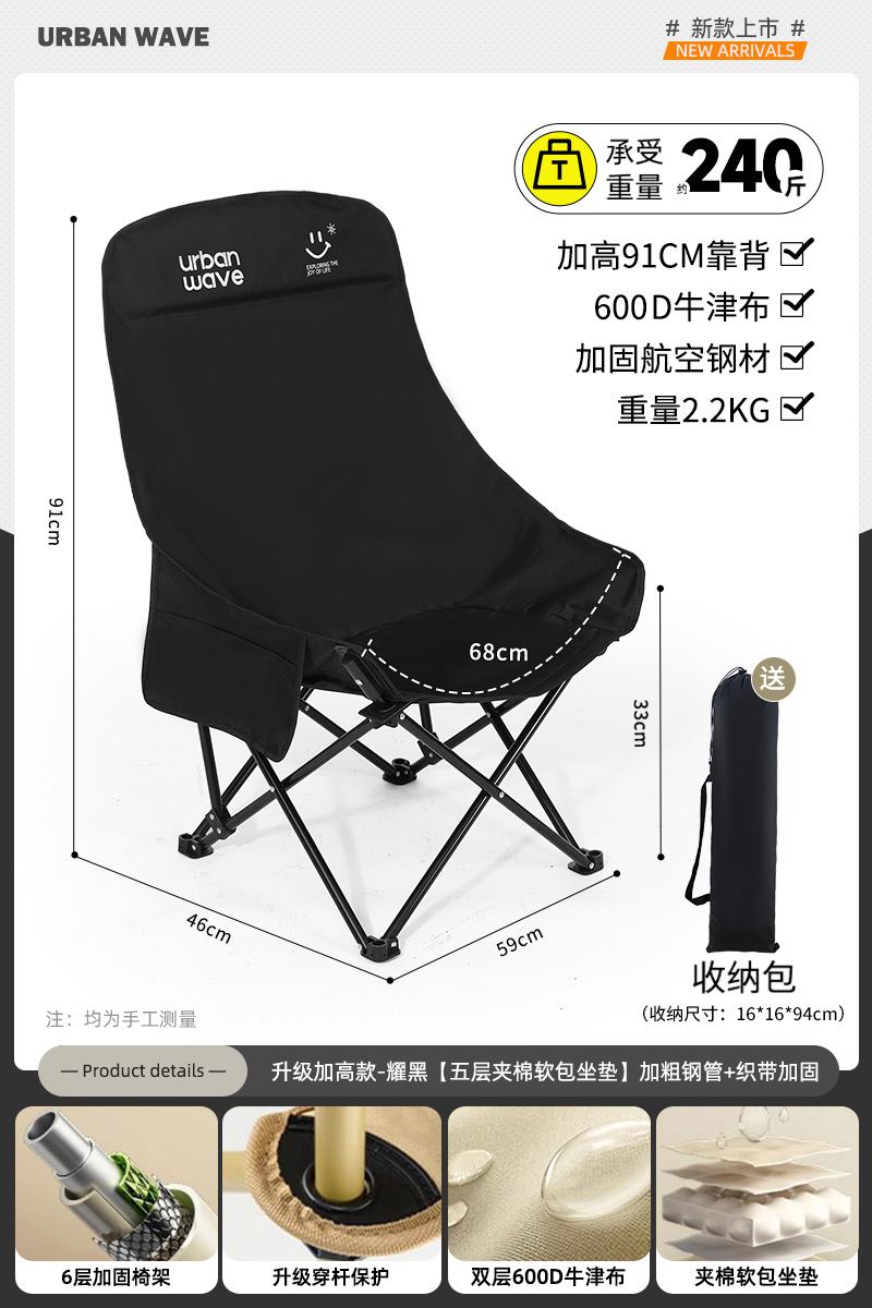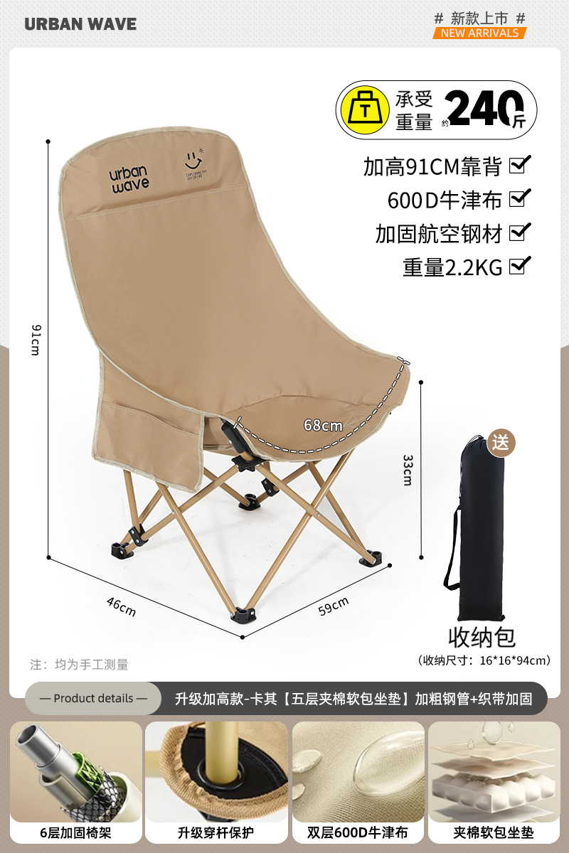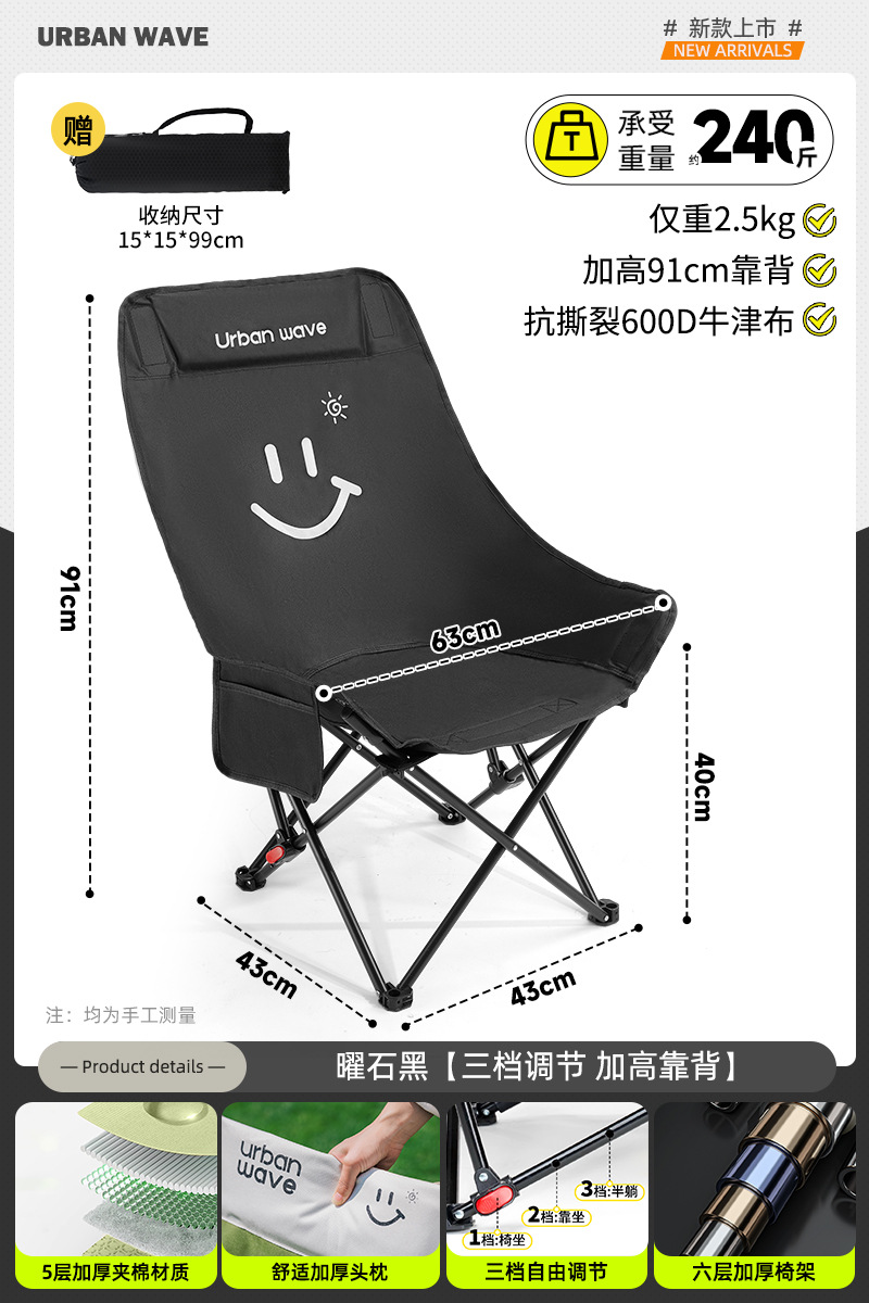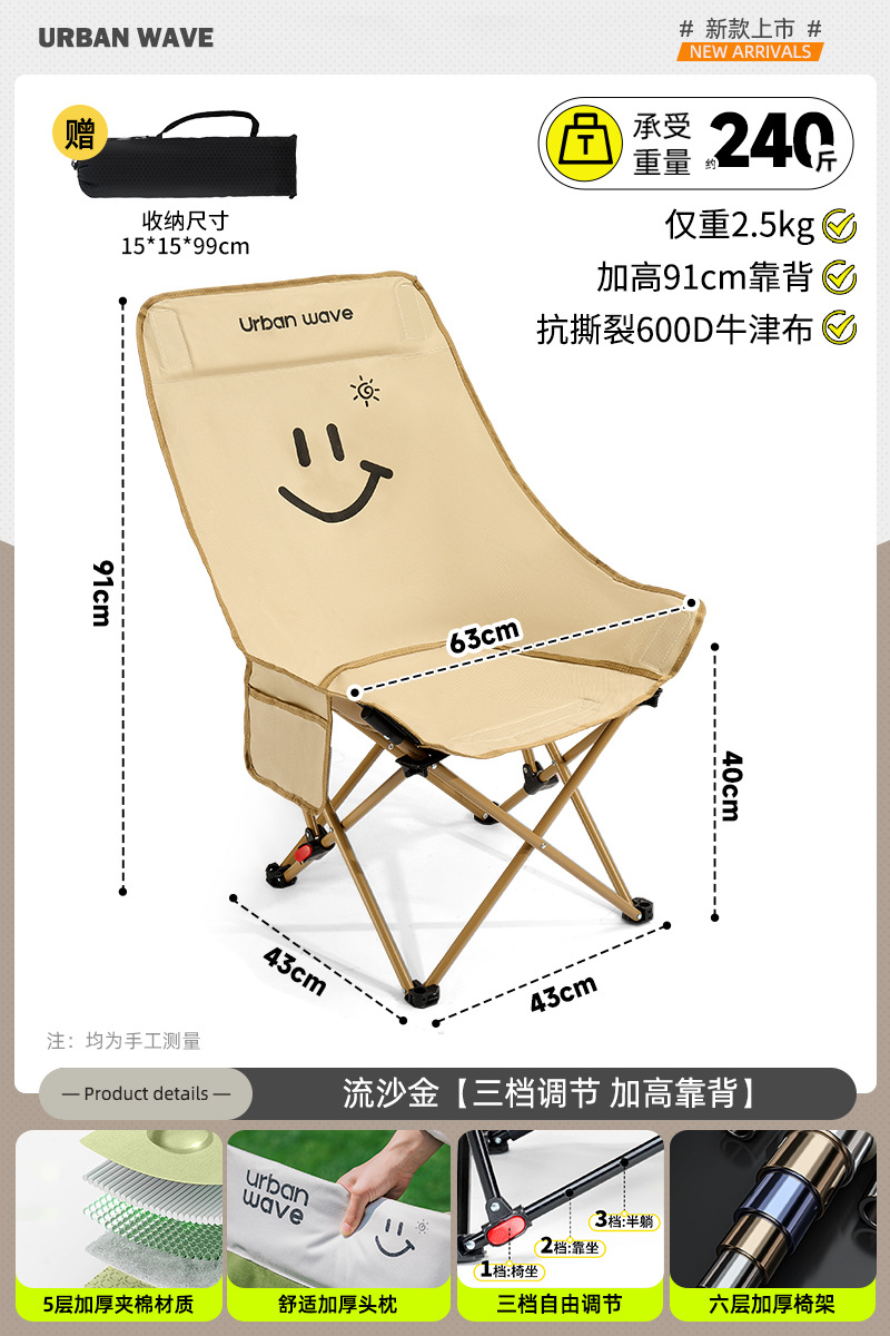 도시 파도 야외 접이식 의자 달 의자 캠핑 의자 휴대용 낚시 해변 의자 피크닉 테이블 의자 장비