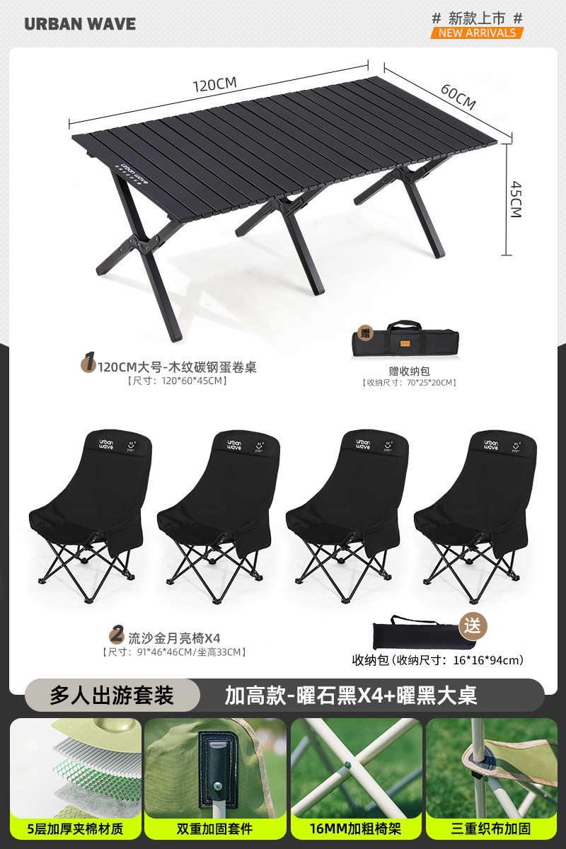 • 단체 여행 세트 [블랙*4 + 블랙 특대 테이블] ✓