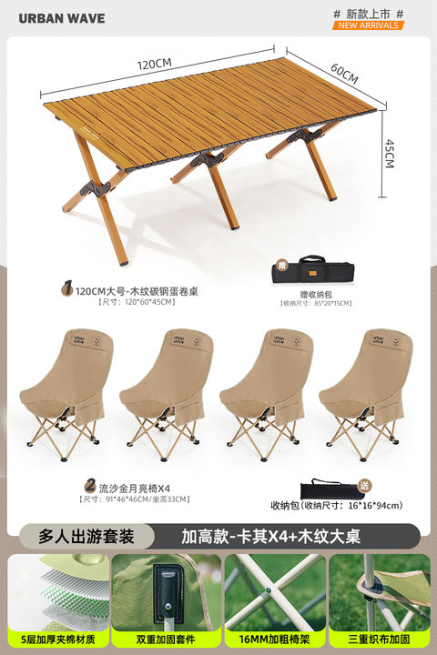 • 단체 여행 세트 [카키*4 + 우드 패턴 특대형 테이블]✓