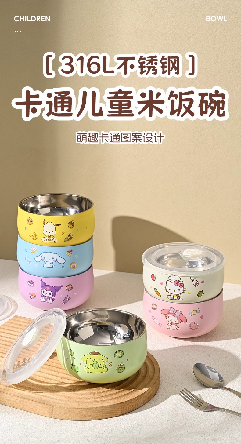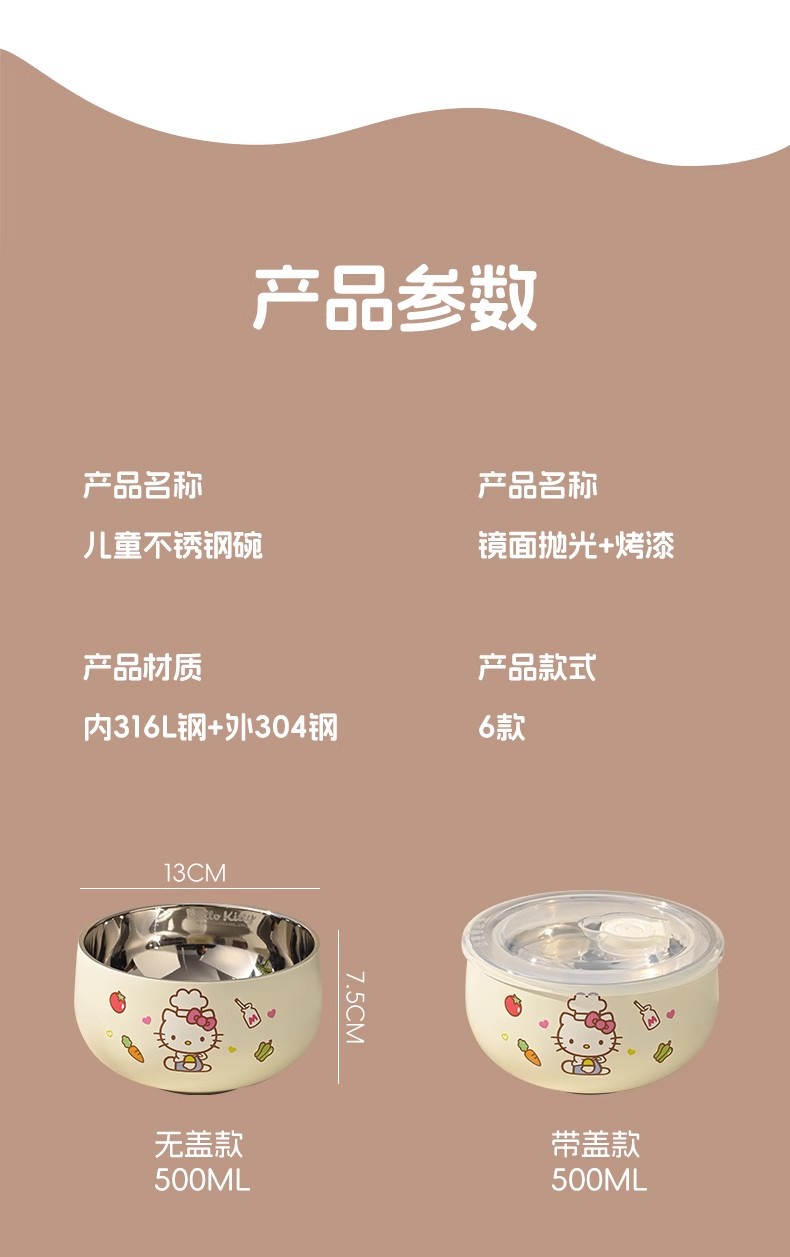 • 정품인증 [헬로키티 스테인리스 그릇 13cm] 뚜껑포함