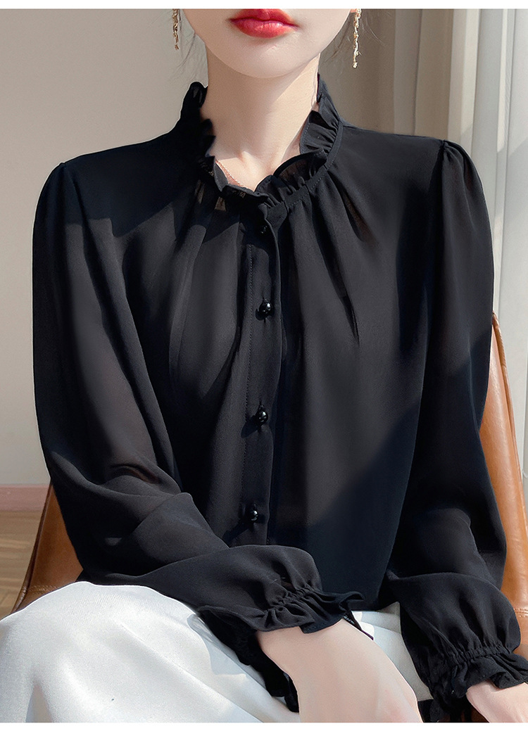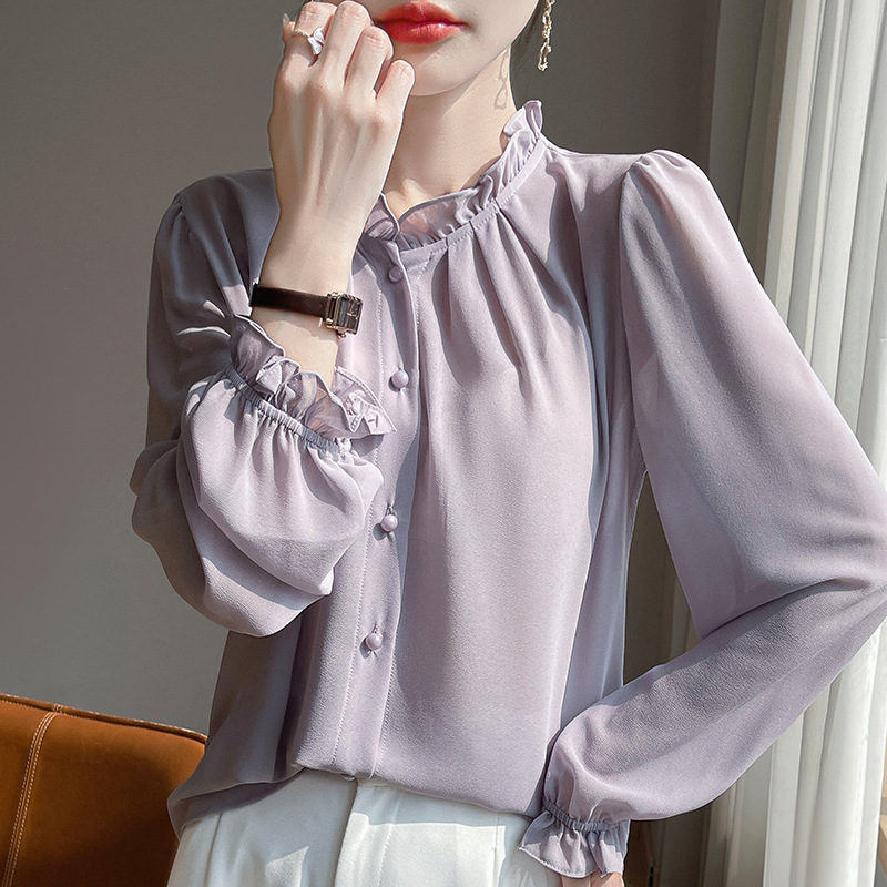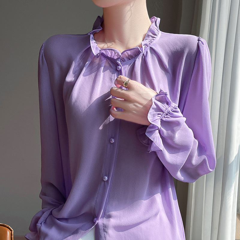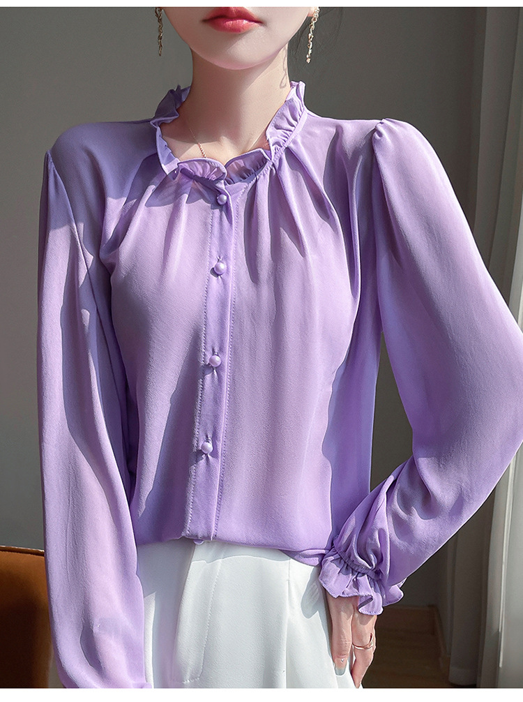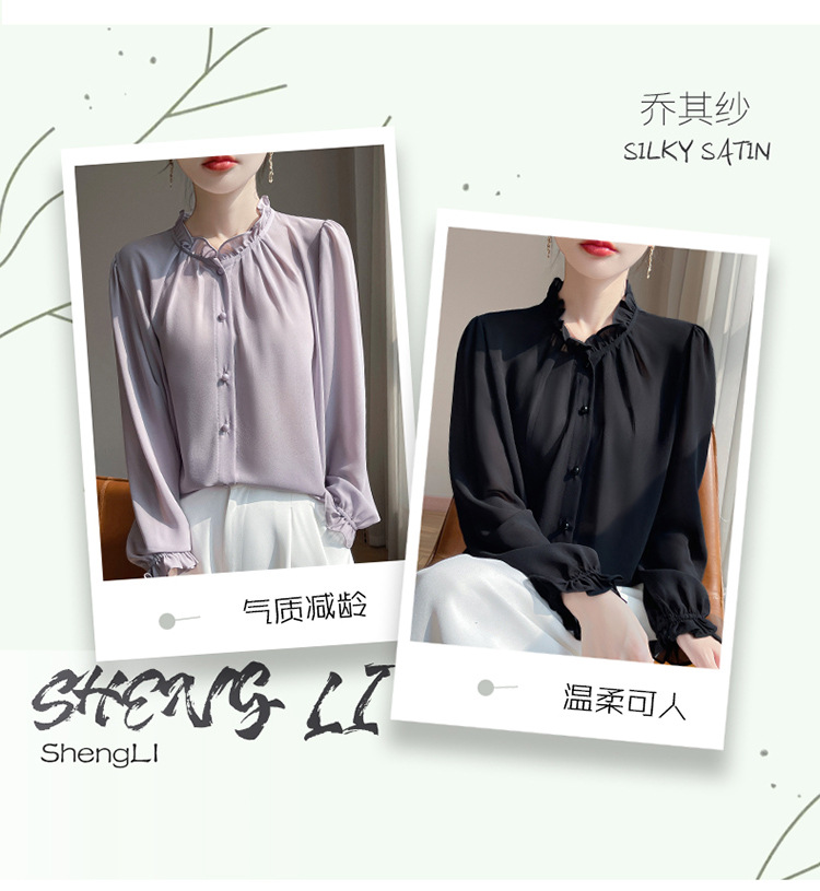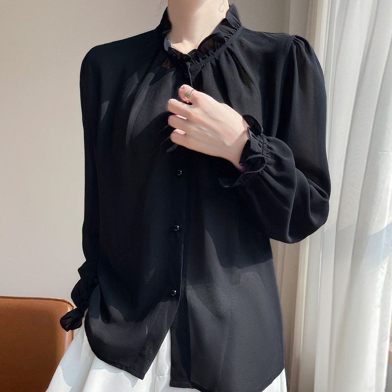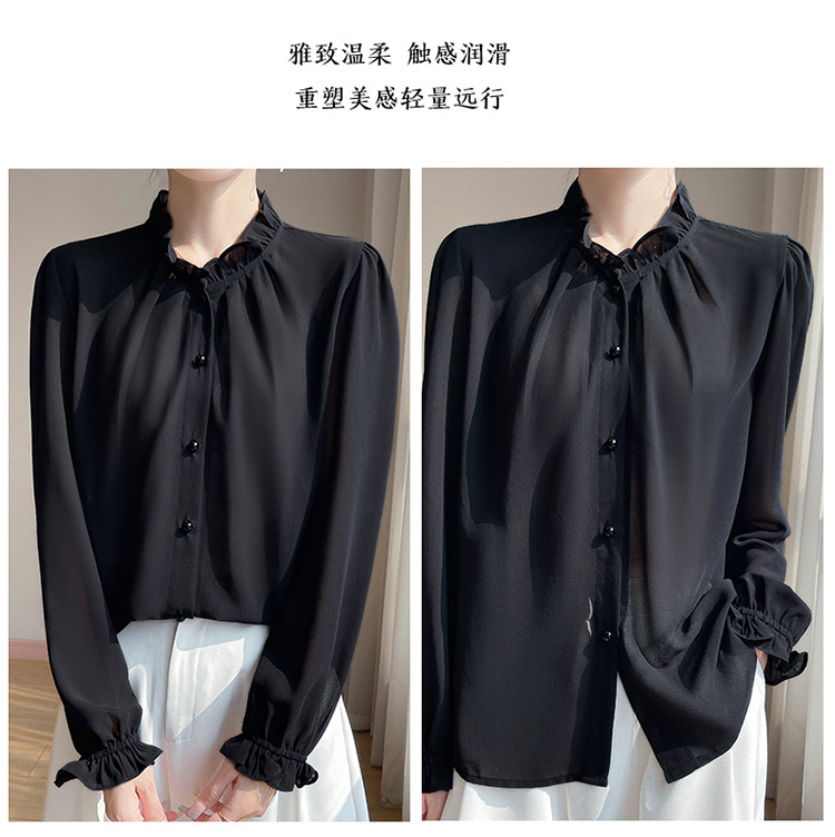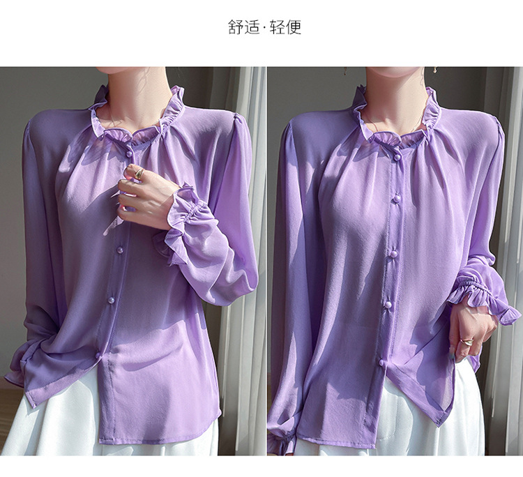 2025년 신상 여름 조젯 버진 에어리 스몰 프래그런스 드레이프 셔츠 프렌치 다용도 긴팔 탑 가디건스토어 가기