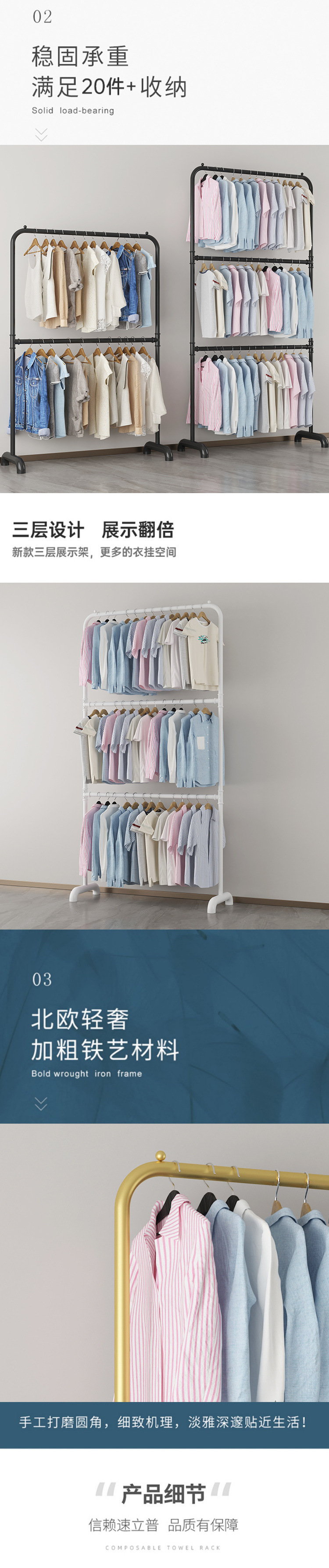 옷걸이, 2층 바닥걸이, 접이식 가정용 심플 소형 옷걸이, 공간 절약형, 3층 아동복 걸이, 신제품스토어 가기