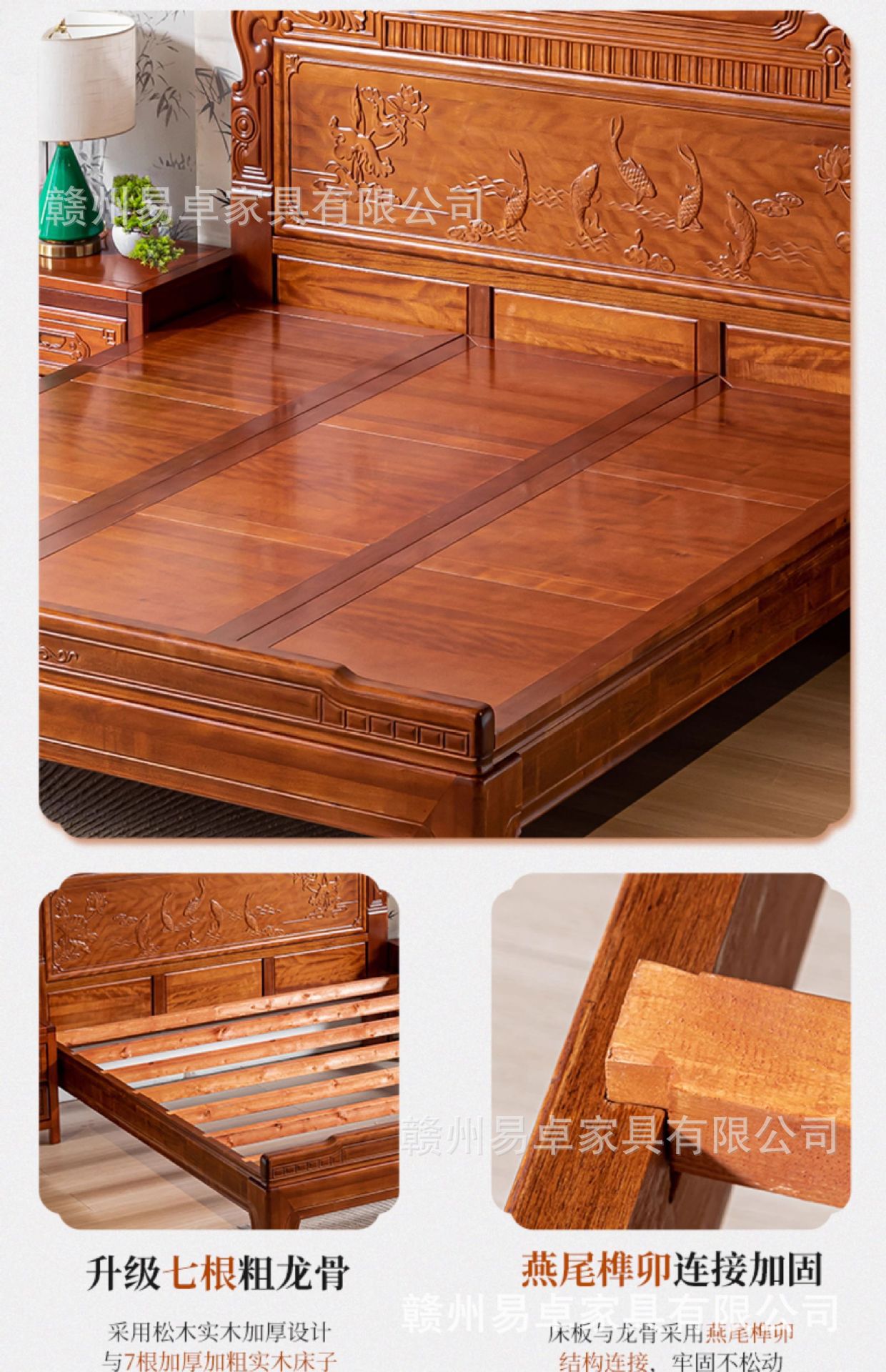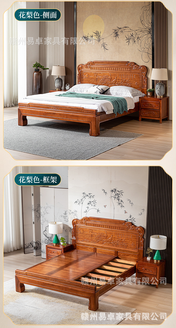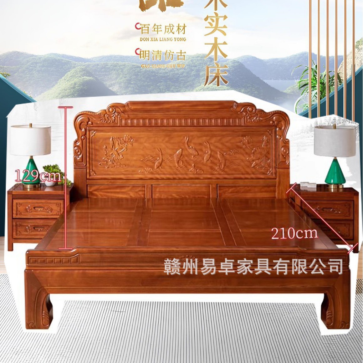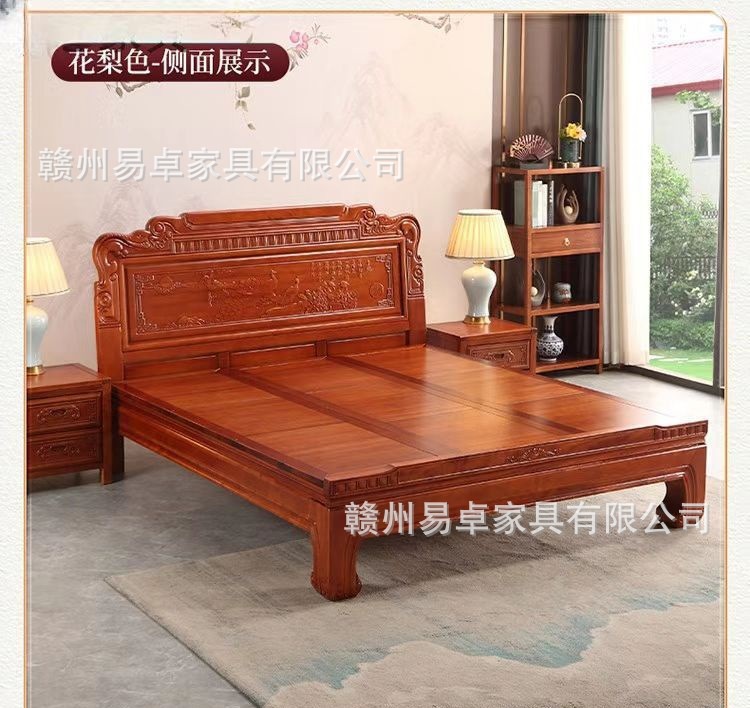 화려한 원목 침대 1.8m 중국식 침대 난캉 가구 마스터 침실 대형 침대 호랑이 발 모양 두꺼운 목공예 중국식 원목 침대스토어 가기