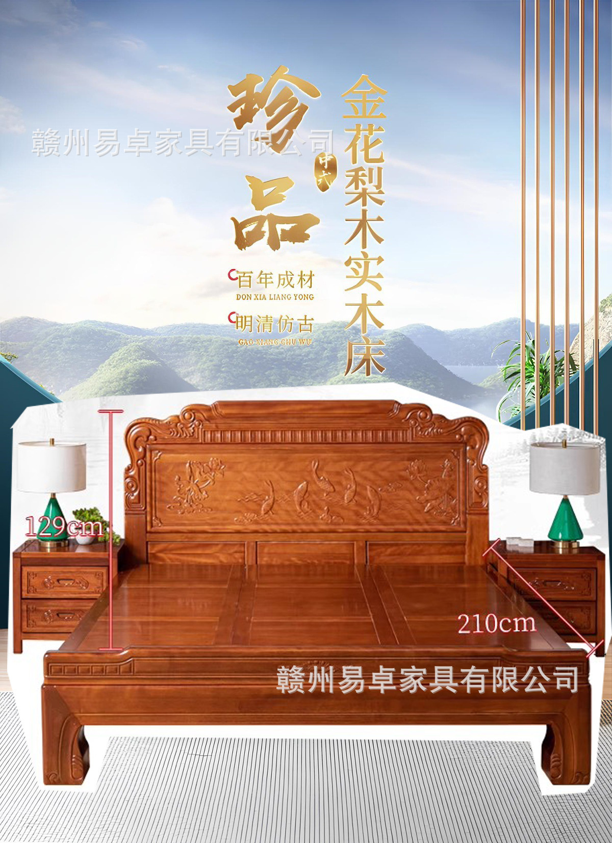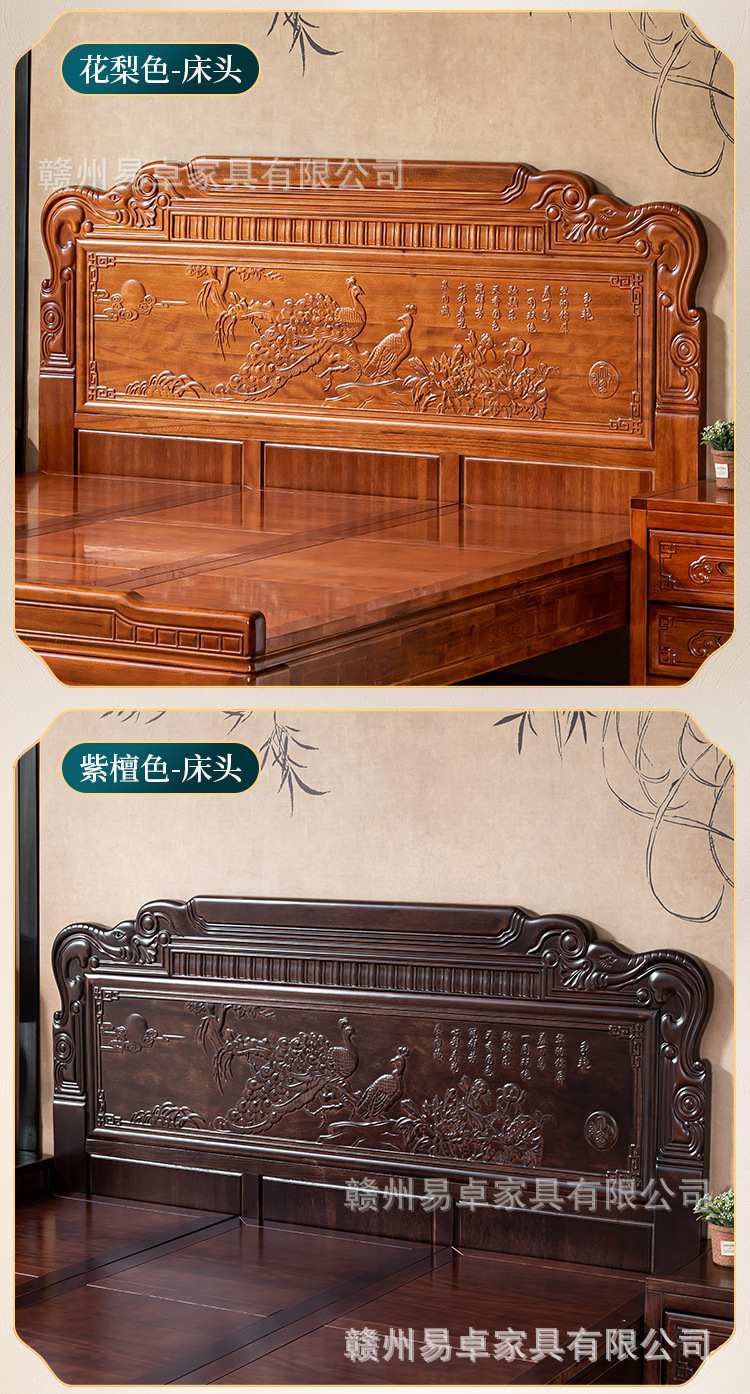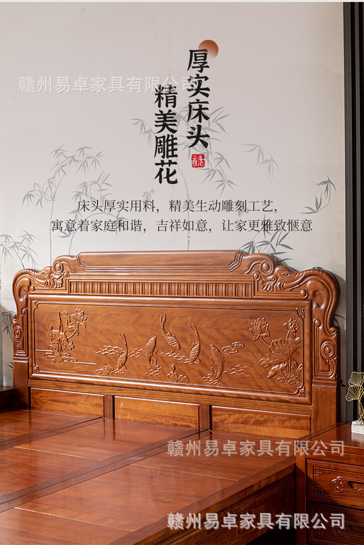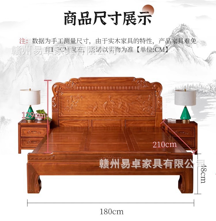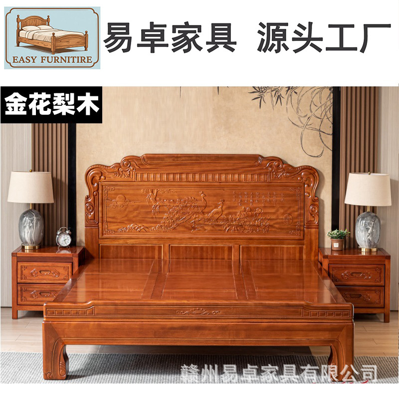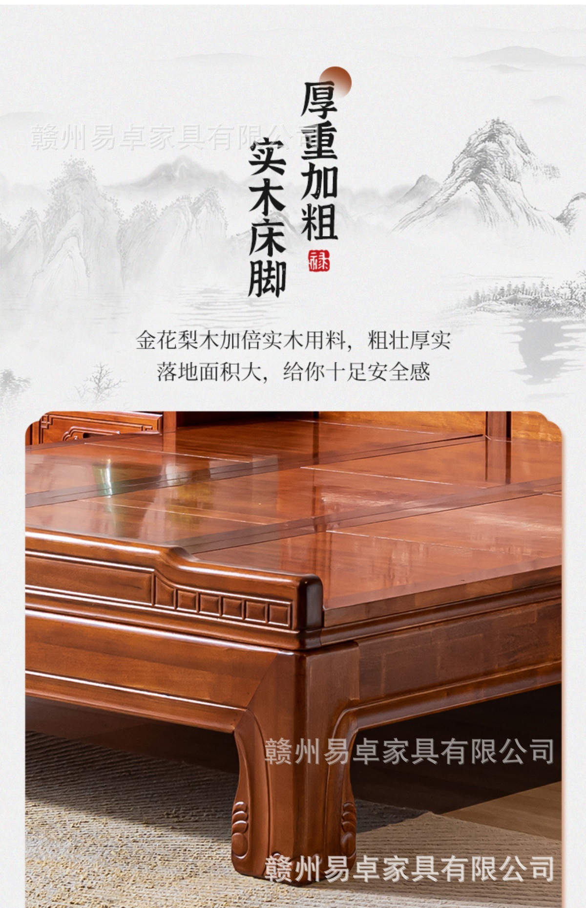 화려한 원목 침대 1.8m 중국식 침대 난캉 가구 마스터 침실 대형 침대 호랑이 발 모양 두꺼운 목공예 중국식 원목 침대스토어 가기