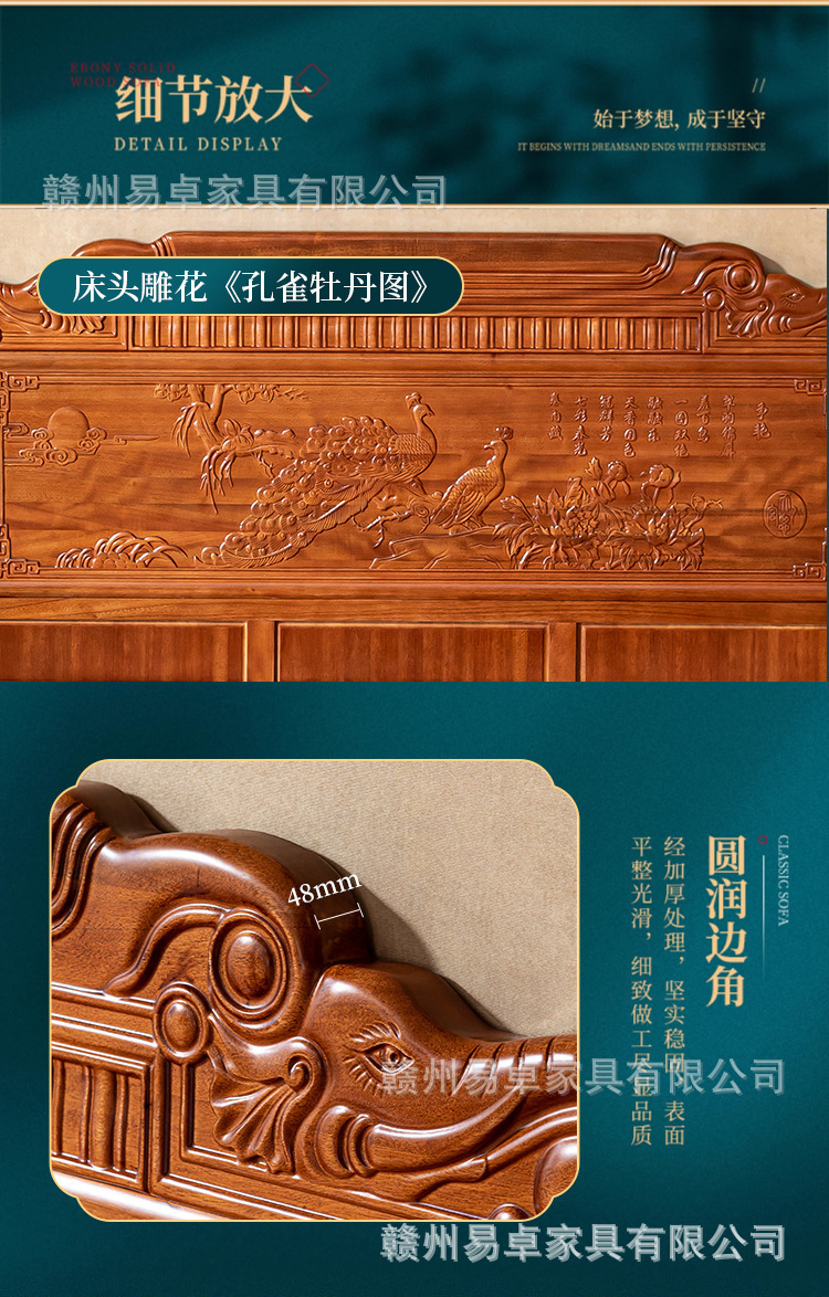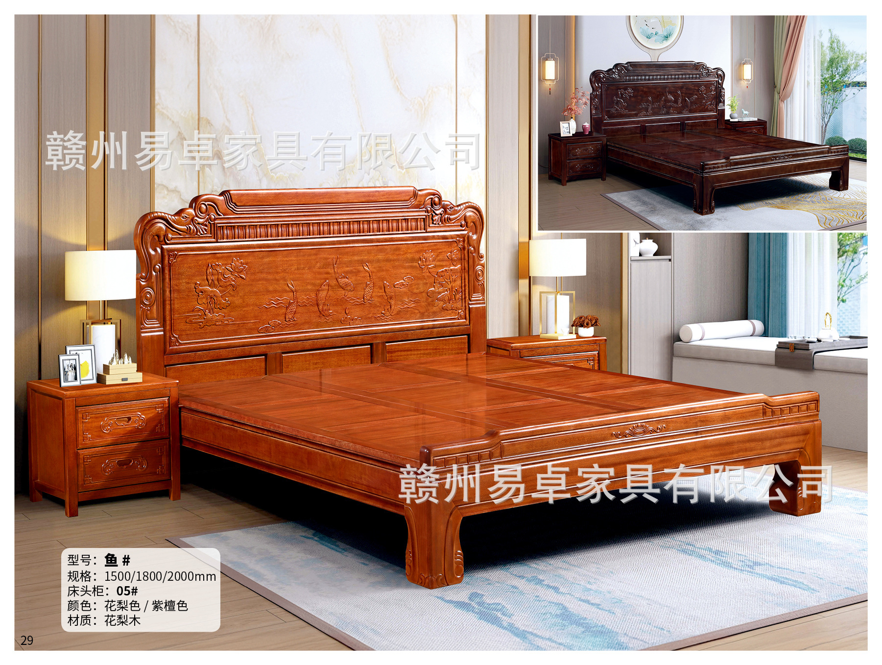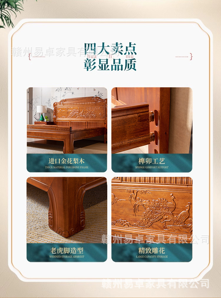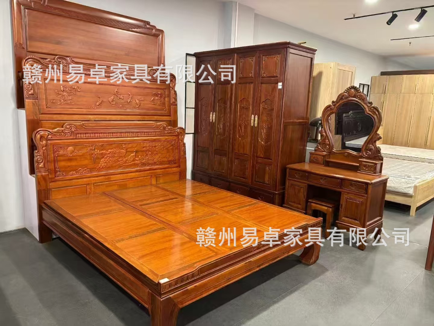 화려한 원목 침대 1.8m 중국식 침대 난캉 가구 마스터 침실 대형 침대 호랑이 발 모양 두꺼운 목공예 중국식 원목 침대스토어 가기