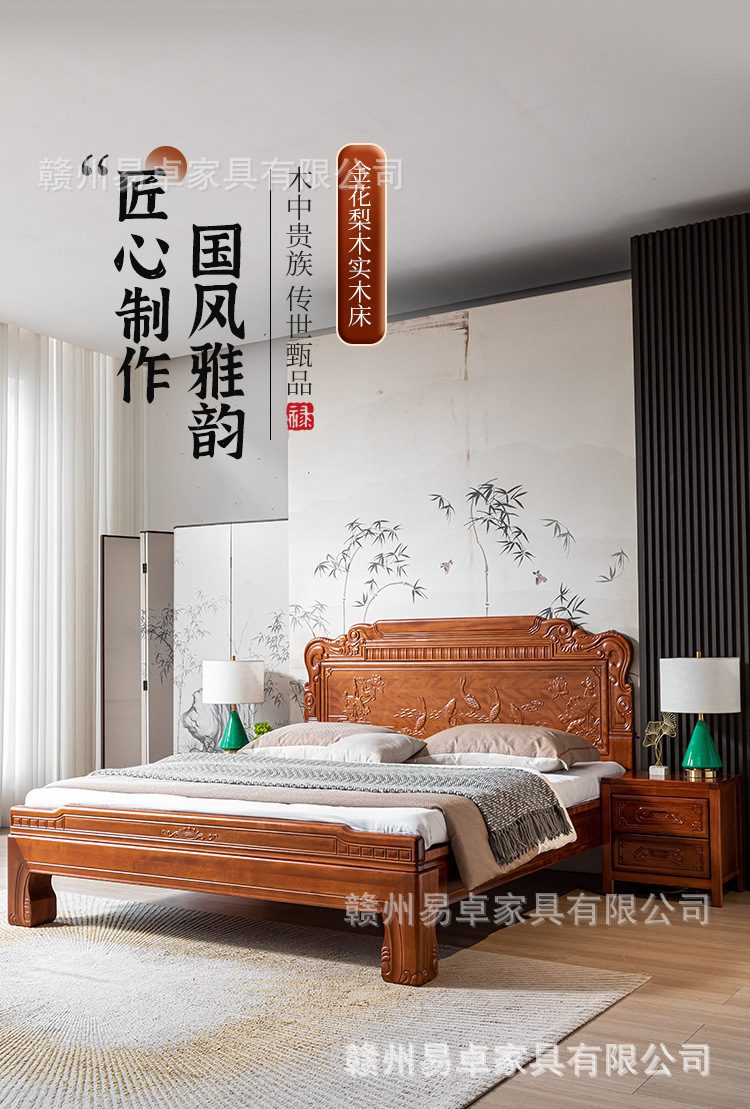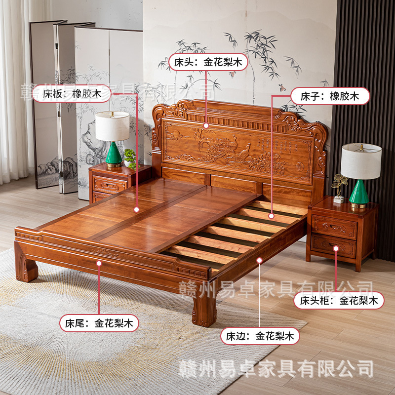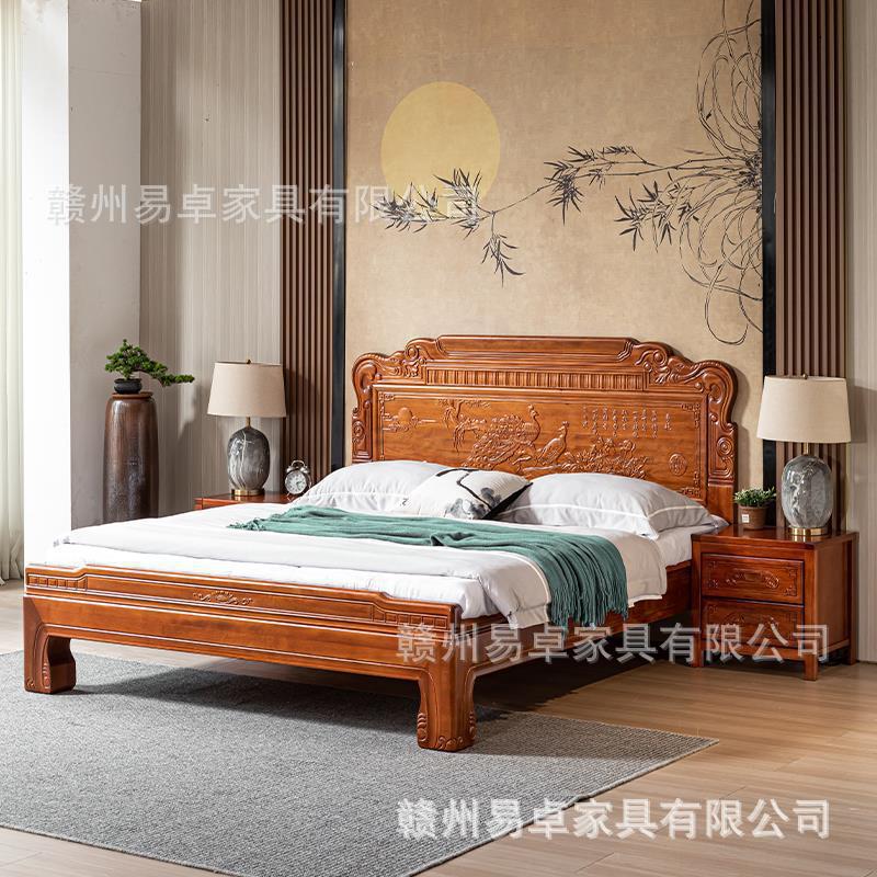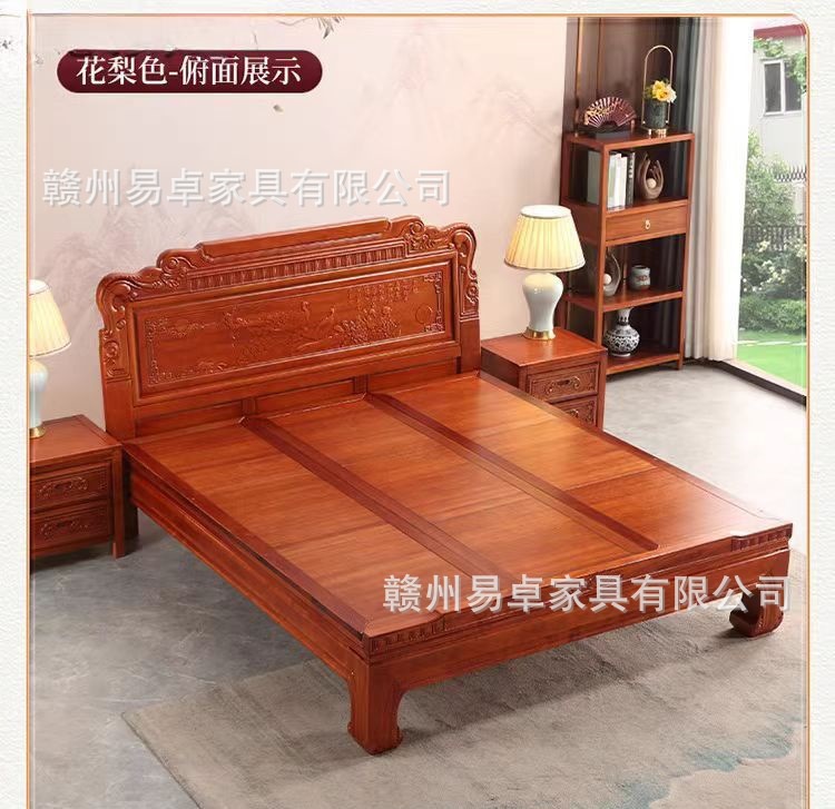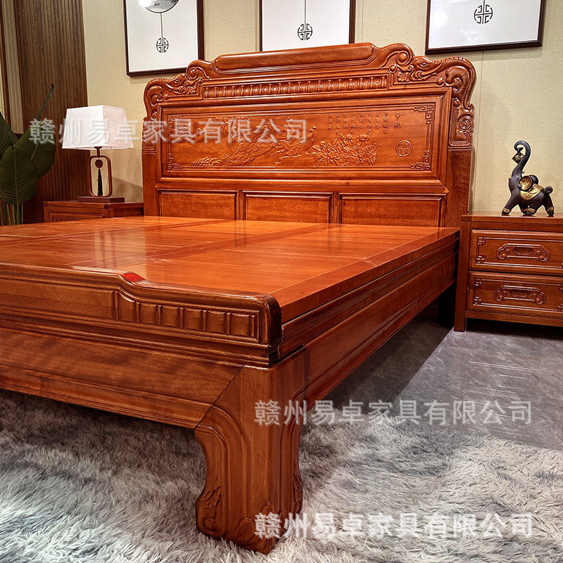 화려한 원목 침대 1.8m 중국식 침대 난캉 가구 마스터 침실 대형 침대 호랑이 발 모양 두꺼운 목공예 중국식 원목 침대