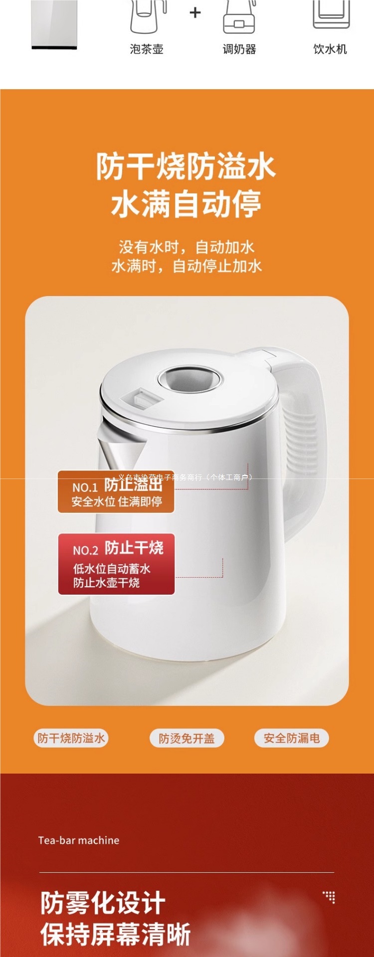• [다채로운 대형 화면] 화이트 + 이중 물 배출구 + 리모콘 + 화상 방지 주전자