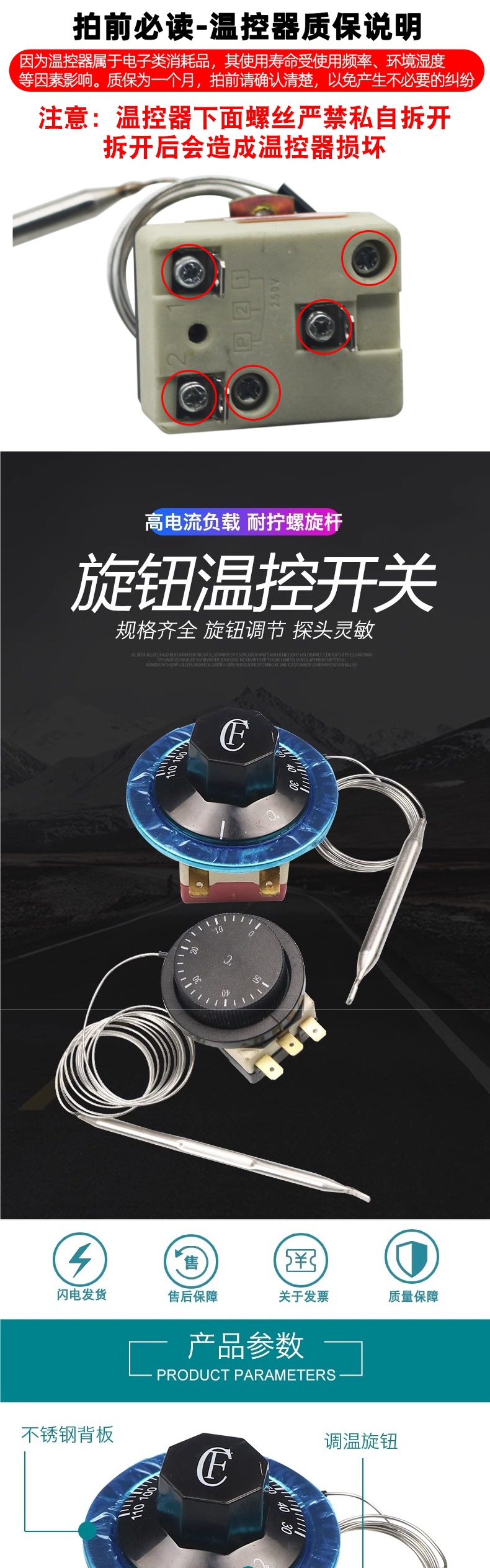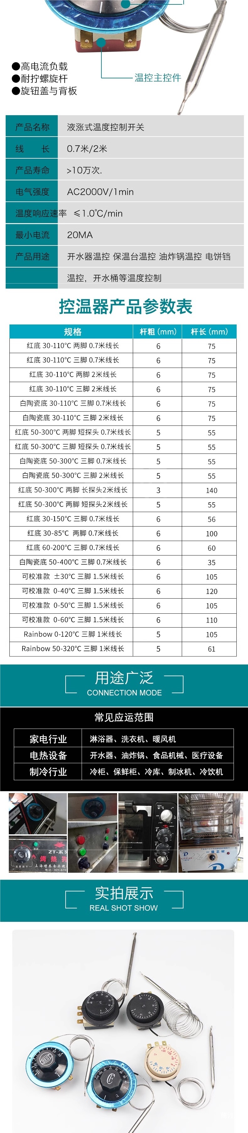 온도 조절기 고전력 스위치 전기 온도 조절 액세서리 온도 조절기 단열 테이블 전기 프라이어 오븐 국수 통스토어 가기