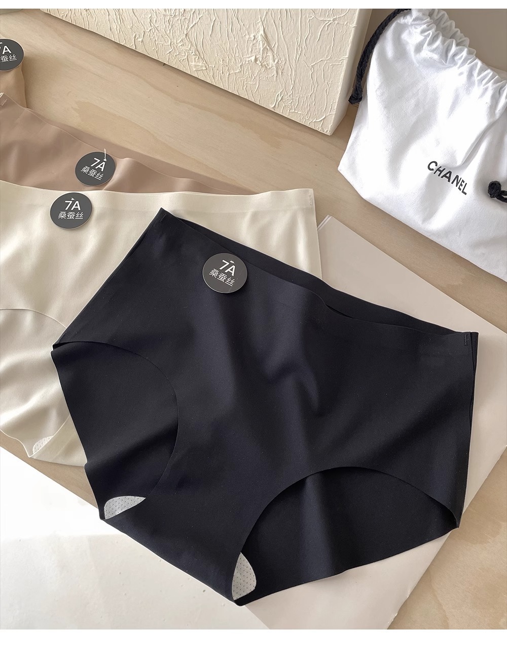 흔적없는 보이지 않는 여성 스포츠 속옷 뽕나무 실크 7A 항균 중간 허리 통기성 얼음 실크 시원한 우유 가죽 바지 여성 반바지스토어 가기