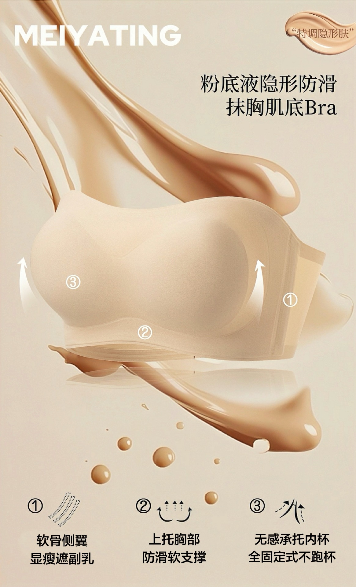 리퀴드 파운데이션, 보이지 않는 스트랩리스 바디브라, 튜브탑, 심리스 스몰버스트 푸쉬업 속옷, 여성용 미끄럼 방지 원숄더 브라