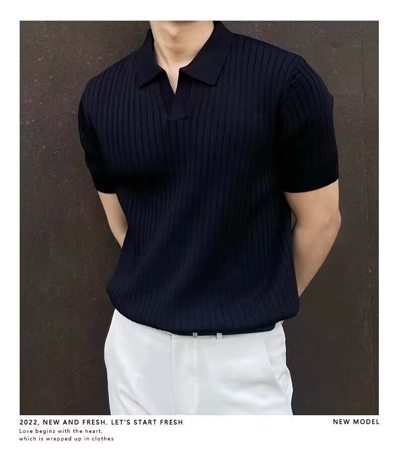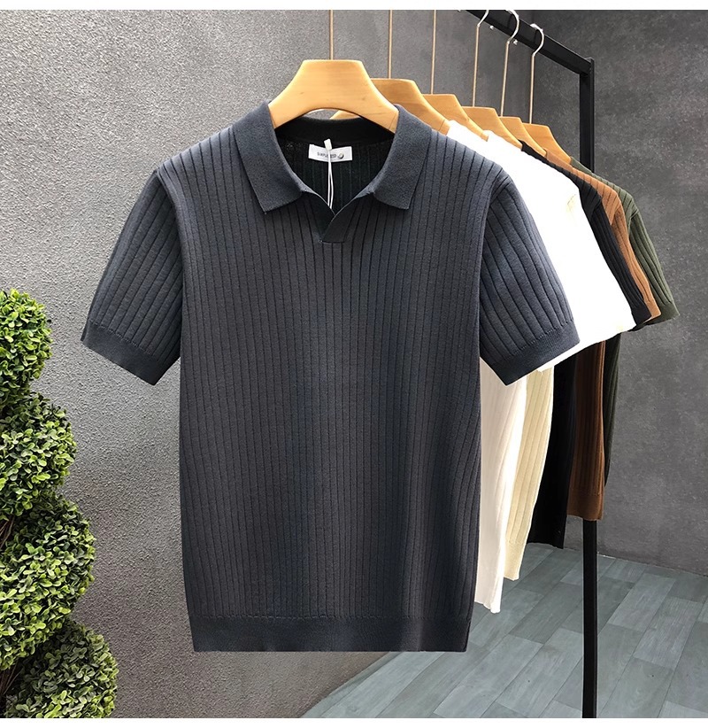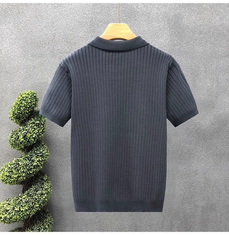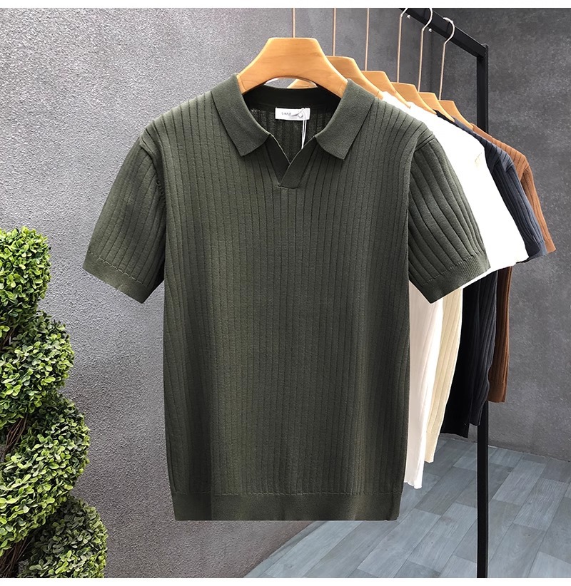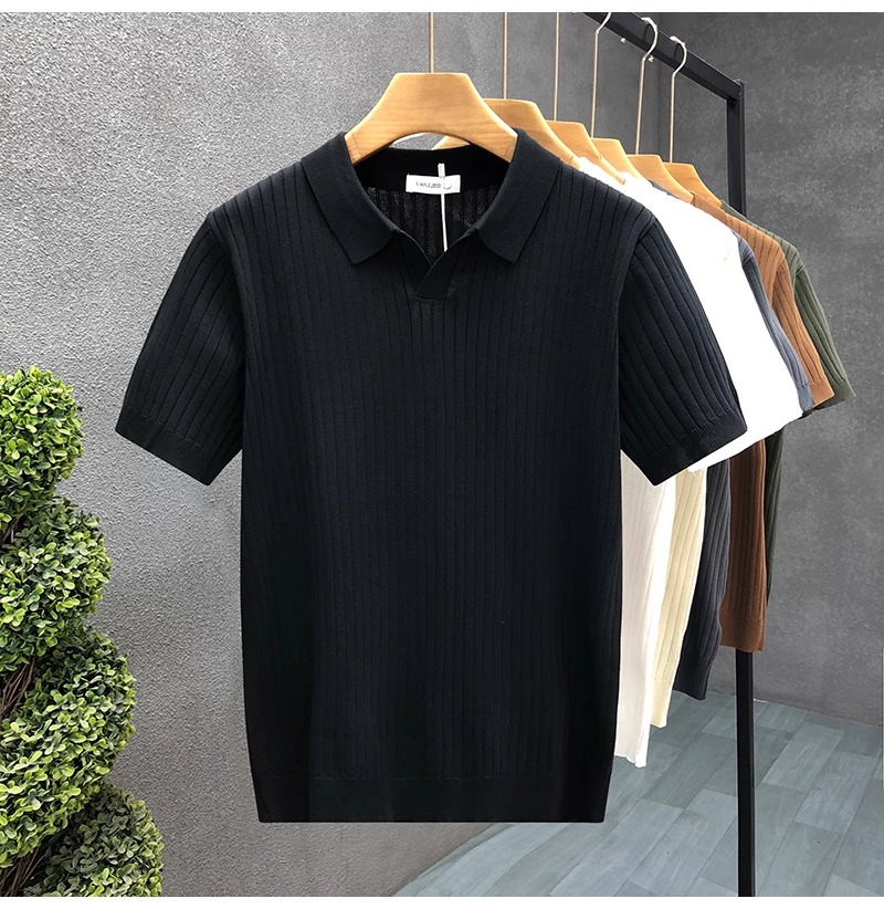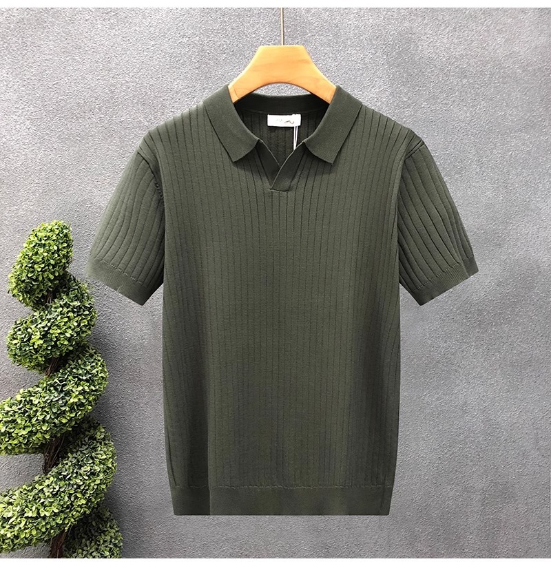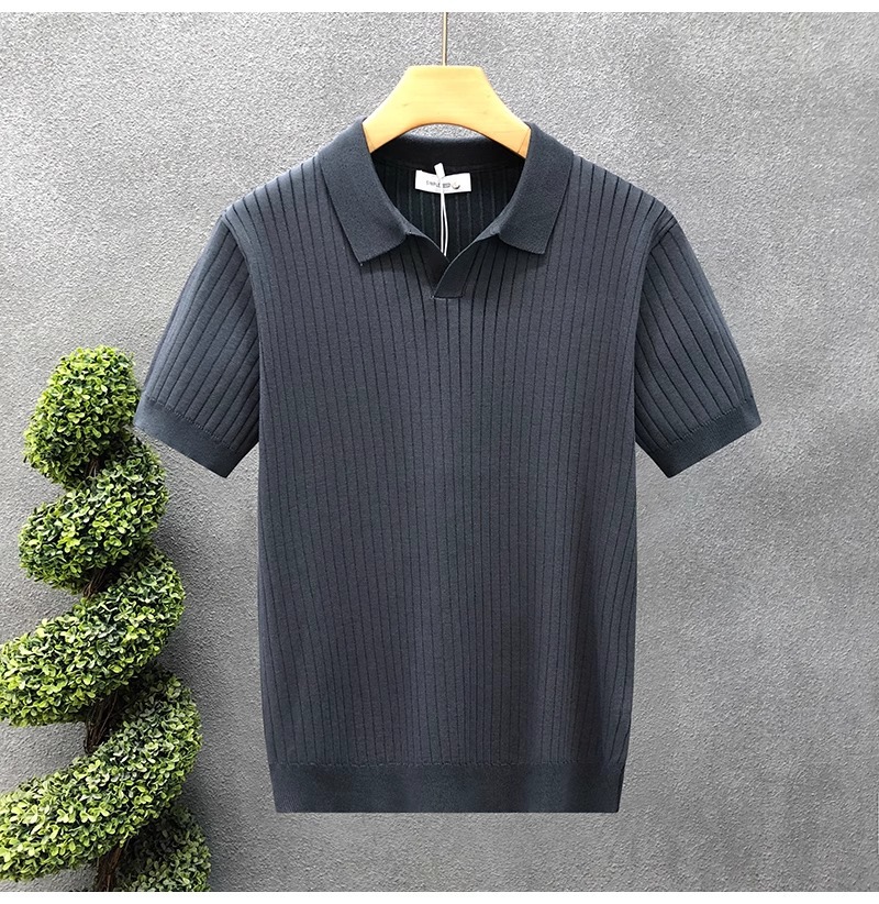 폴로 셔츠 V 넥 반팔 스웨터 남성 라펠 갈매기 칼라 스트라이프 비즈니스 티셔츠 트렌디 대형 대외 무역 국경 간 도매스토어 가기