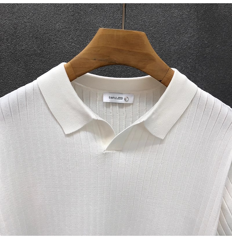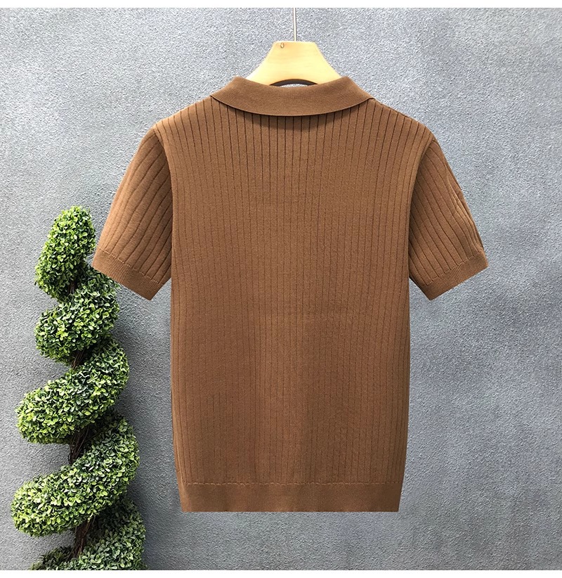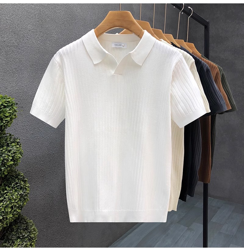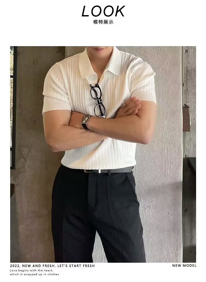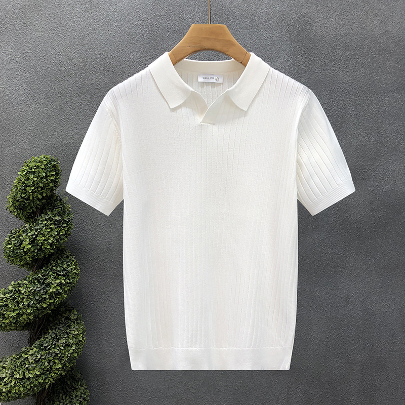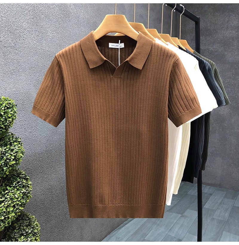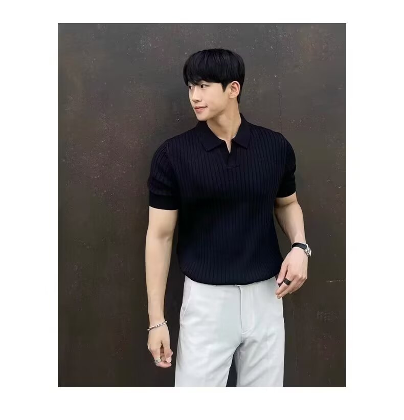 폴로 셔츠 V 넥 반팔 스웨터 남성 라펠 갈매기 칼라 스트라이프 비즈니스 티셔츠 트렌디 대형 대외 무역 국경 간 도매스토어 가기