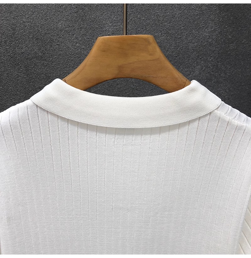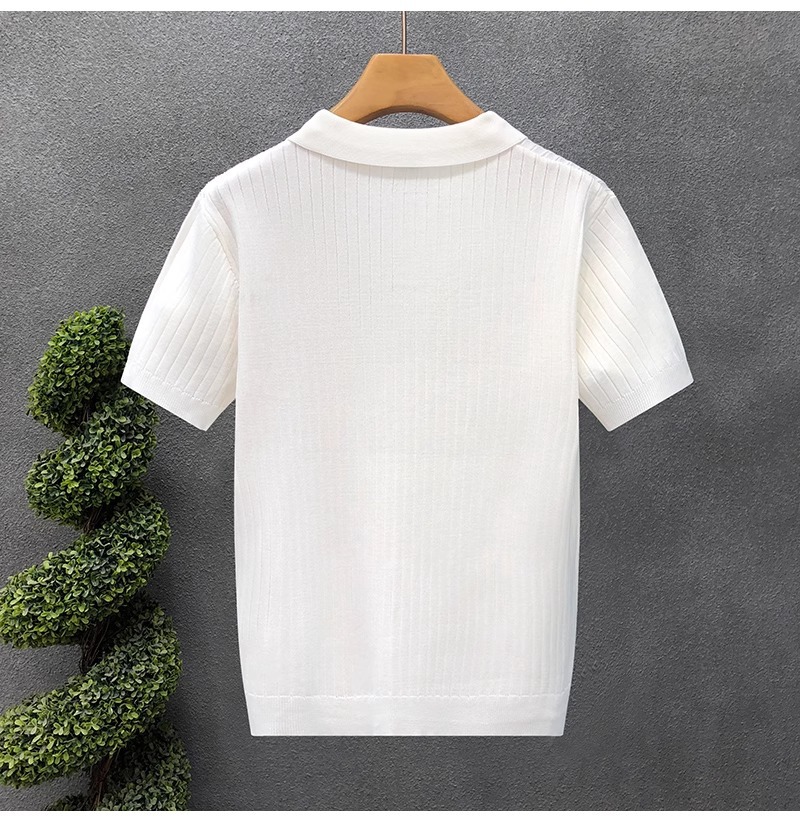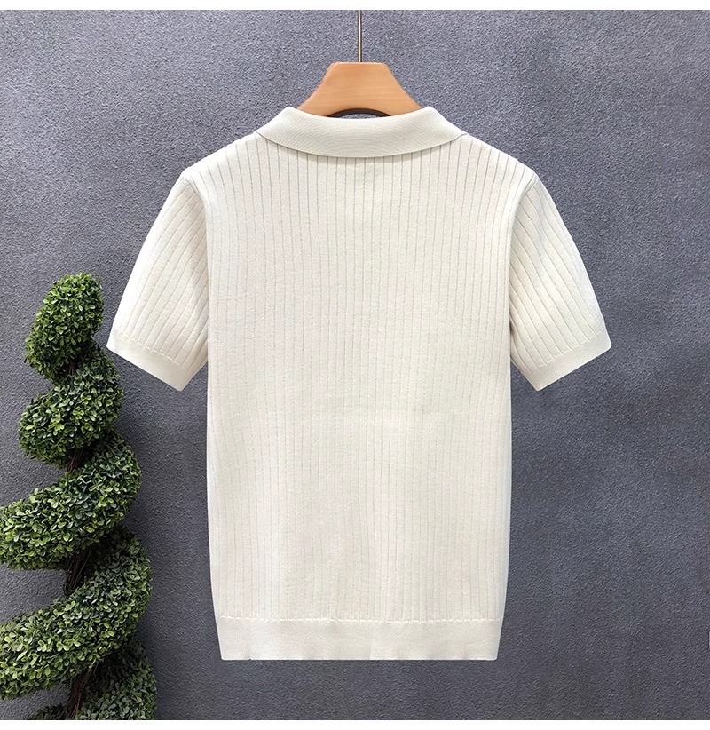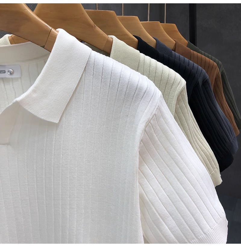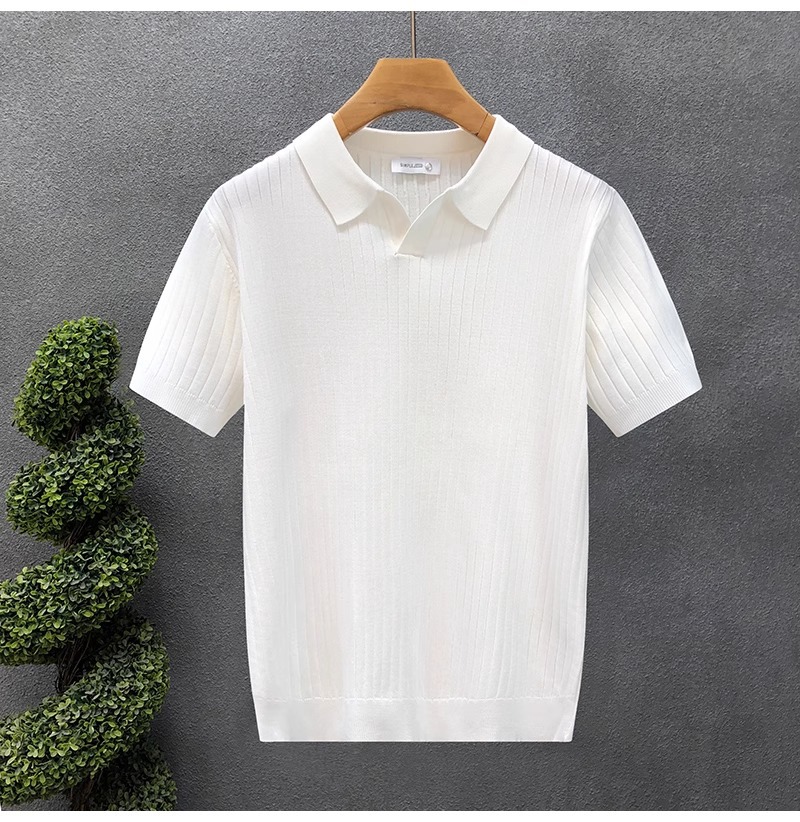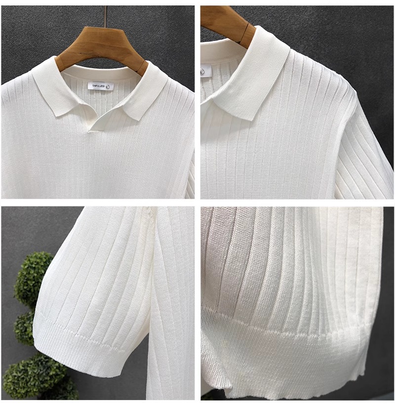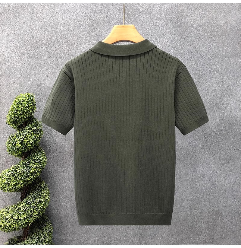 폴로 셔츠 V 넥 반팔 스웨터 남성 라펠 갈매기 칼라 스트라이프 비즈니스 티셔츠 트렌디 대형 대외 무역 국경 간 도매스토어 가기