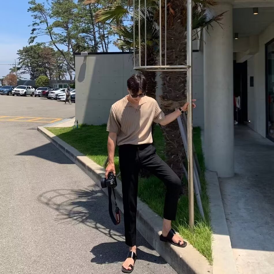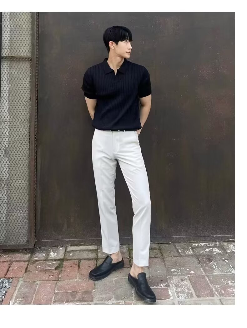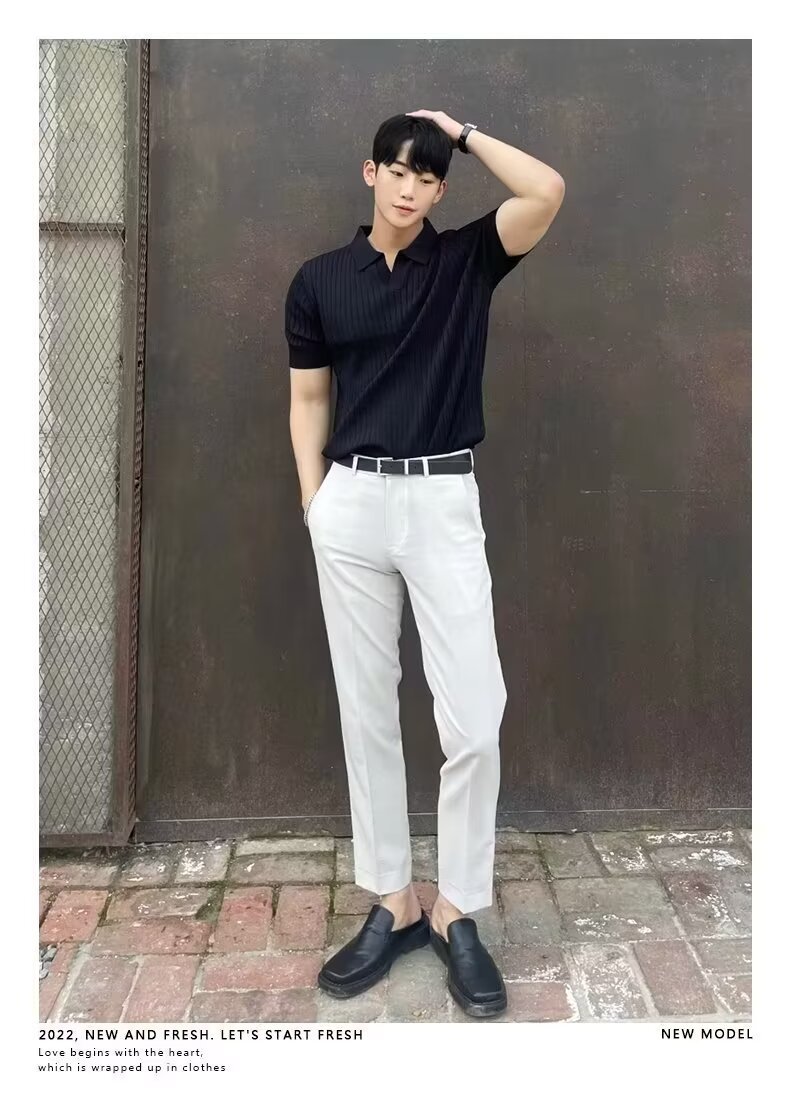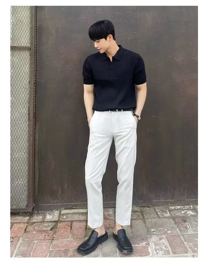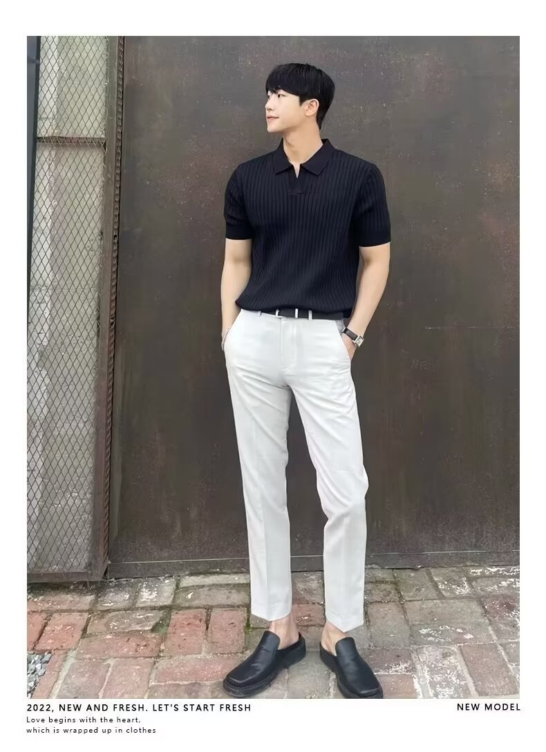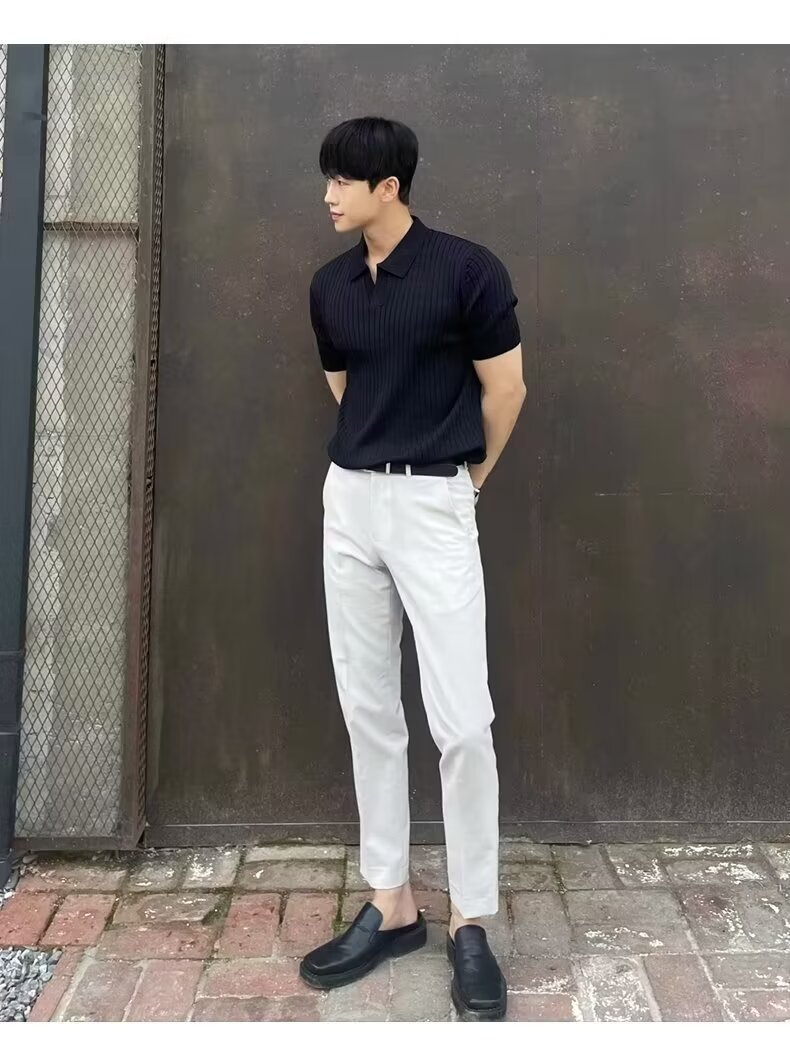 폴로 셔츠 V 넥 반팔 스웨터 남성 라펠 갈매기 칼라 스트라이프 비즈니스 티셔츠 트렌디 대형 대외 무역 국경 간 도매스토어 가기